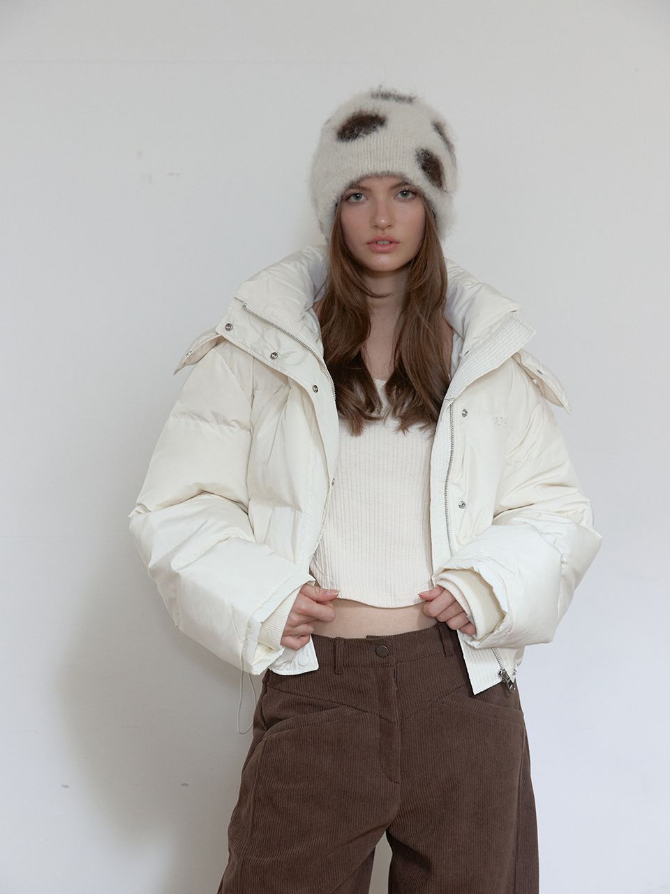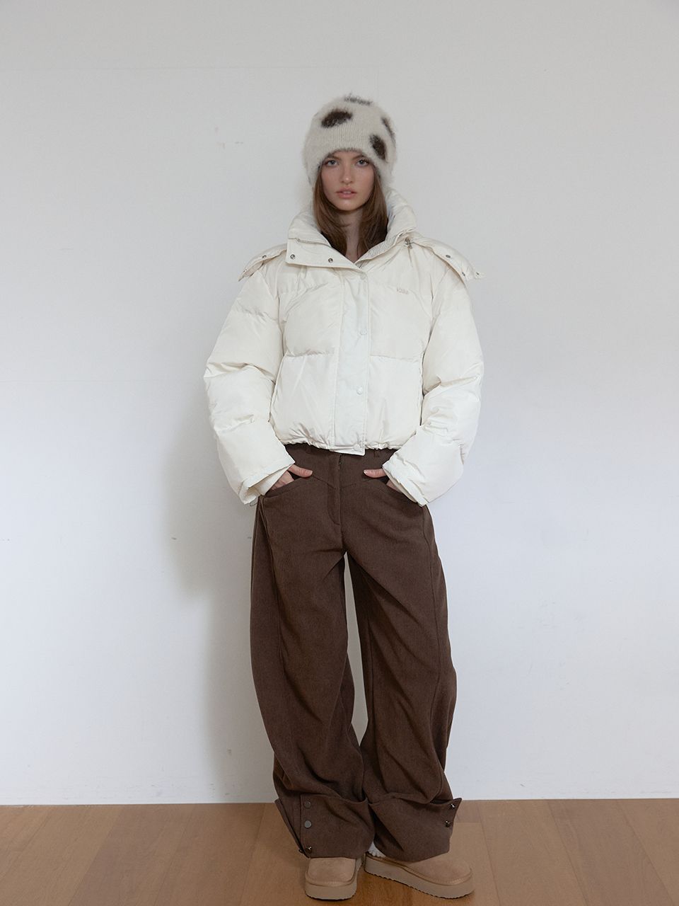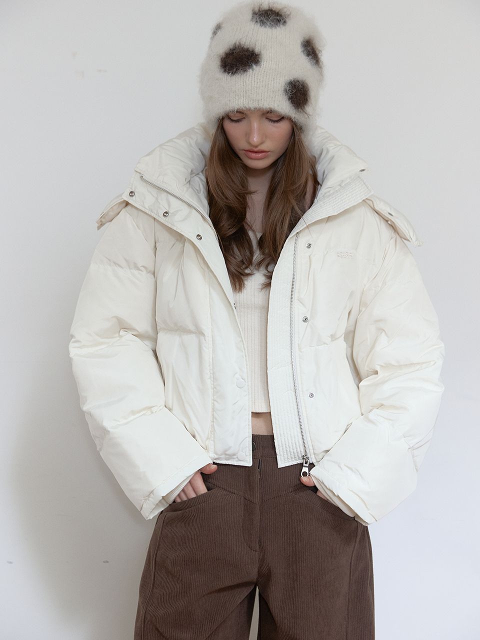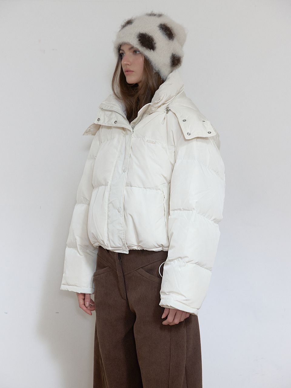 후드 탈부착/자수 포인트/밑단 스트링/소매 시보리 /숏 기장 패딩/