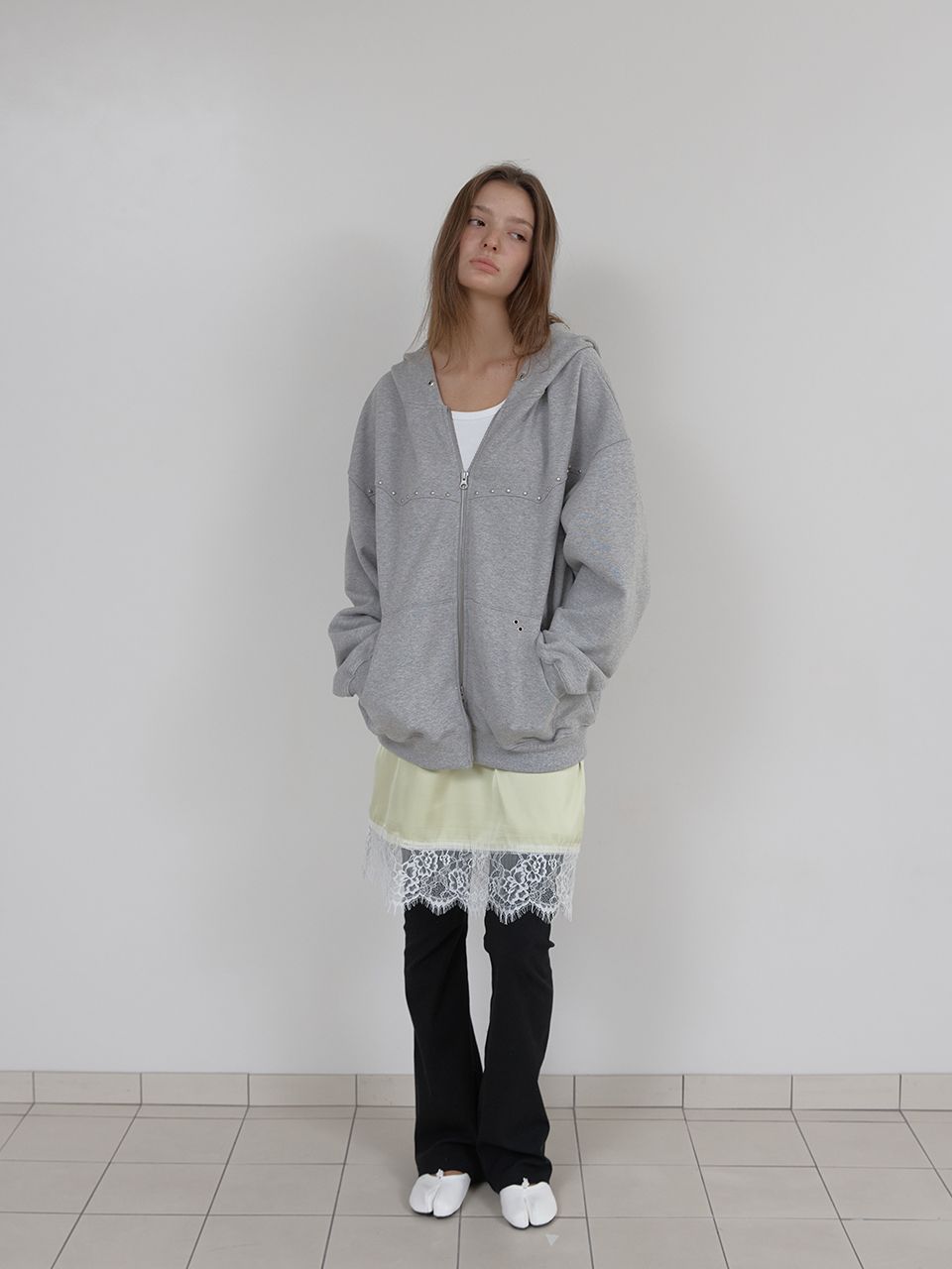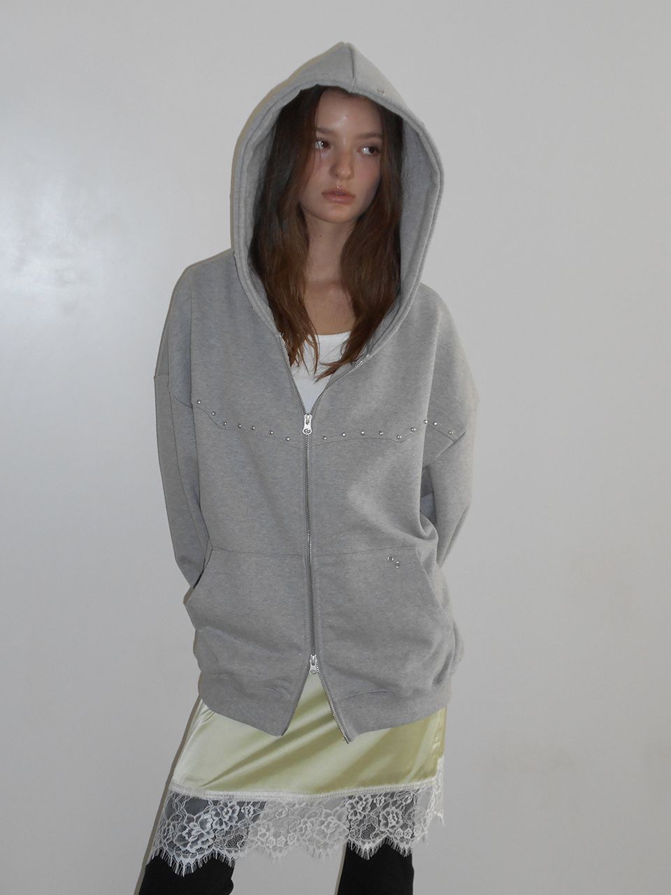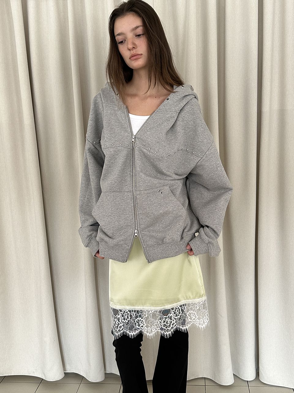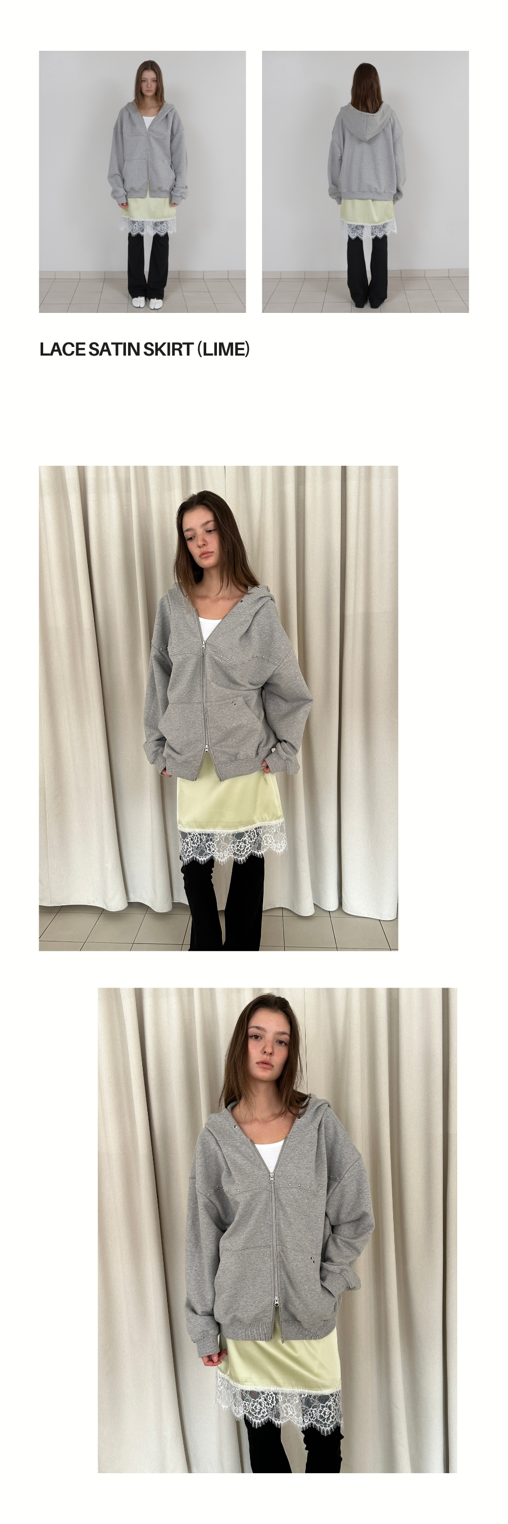 LACE SATIN SKIRT (LIME)