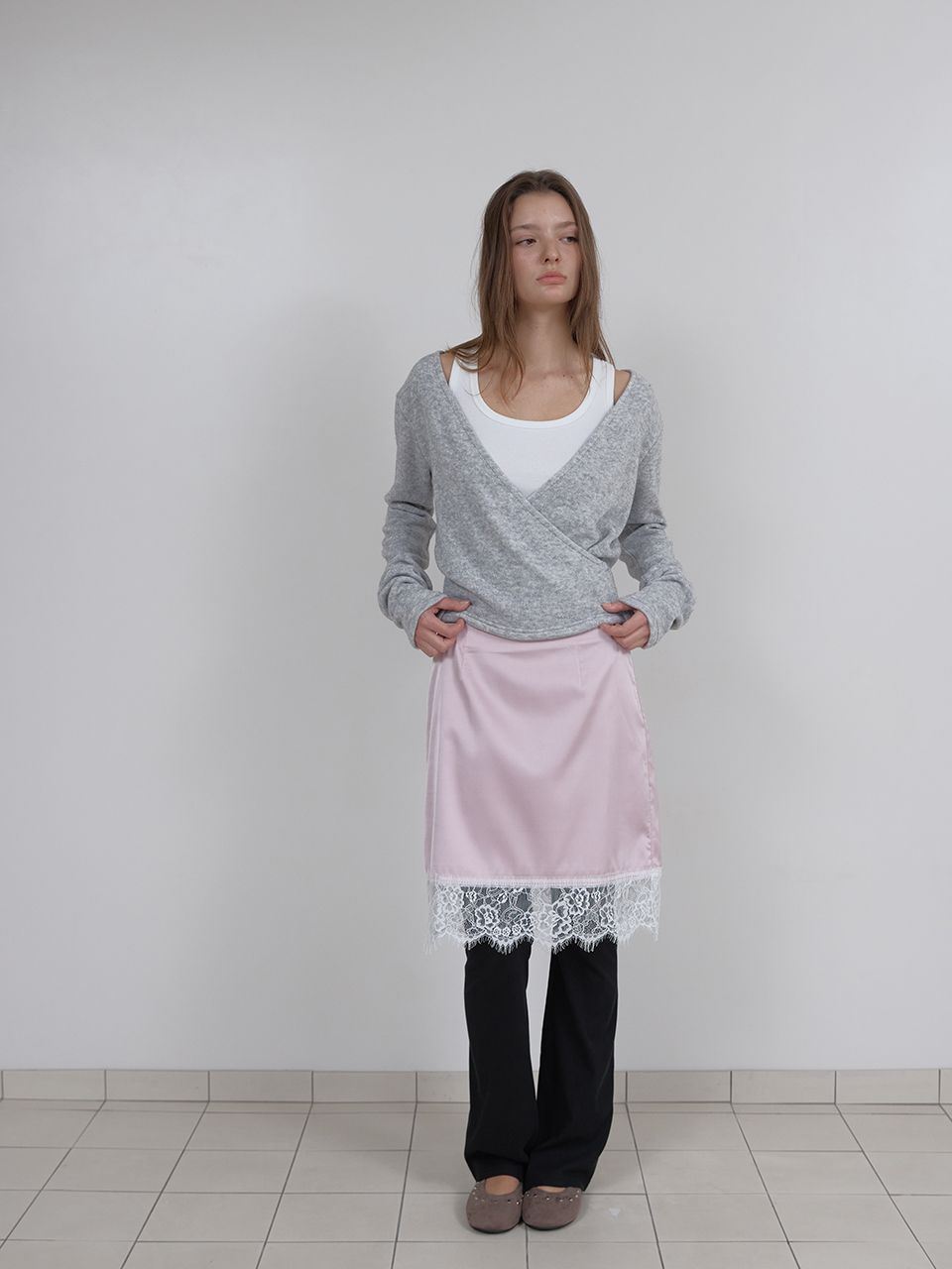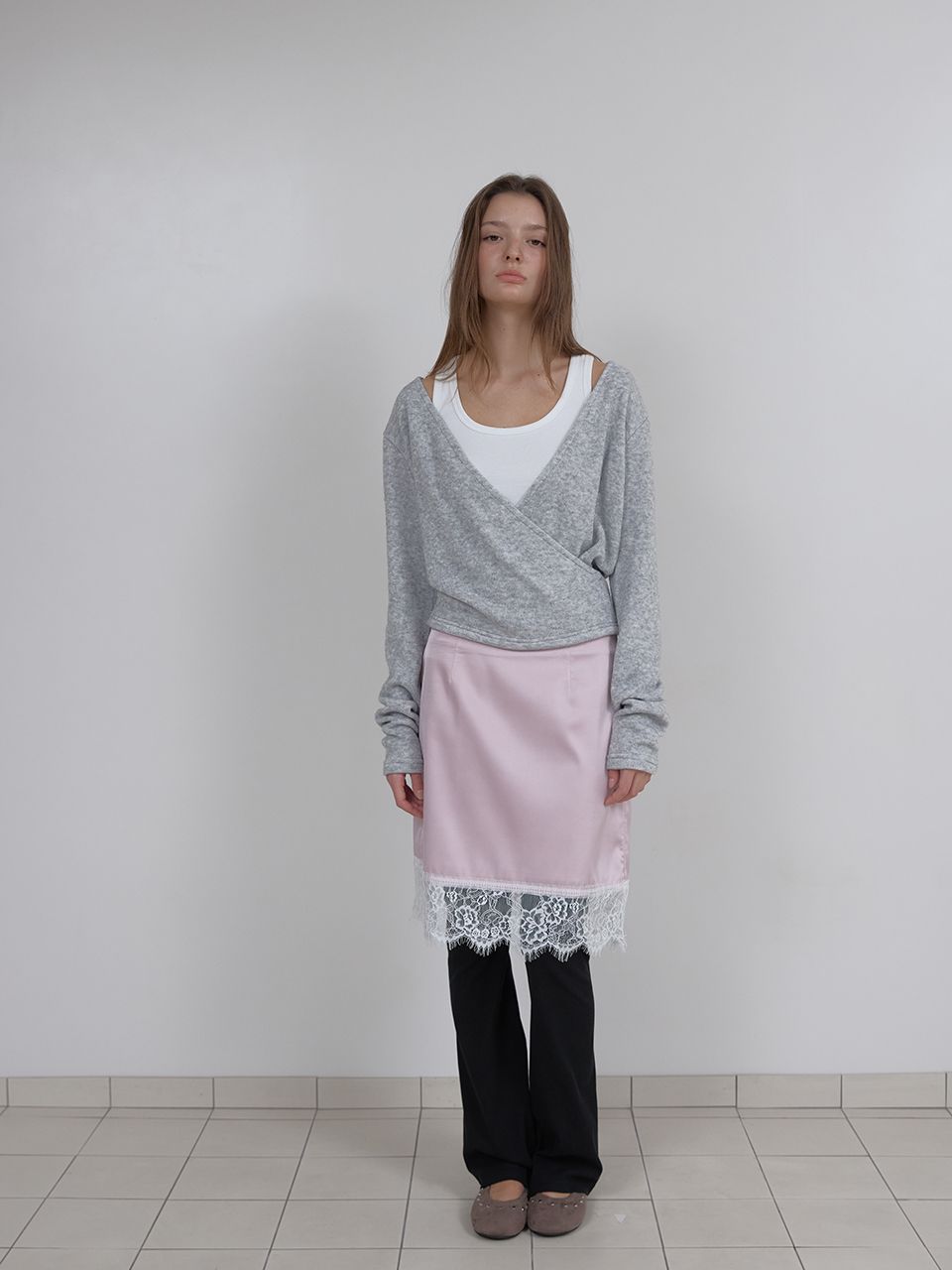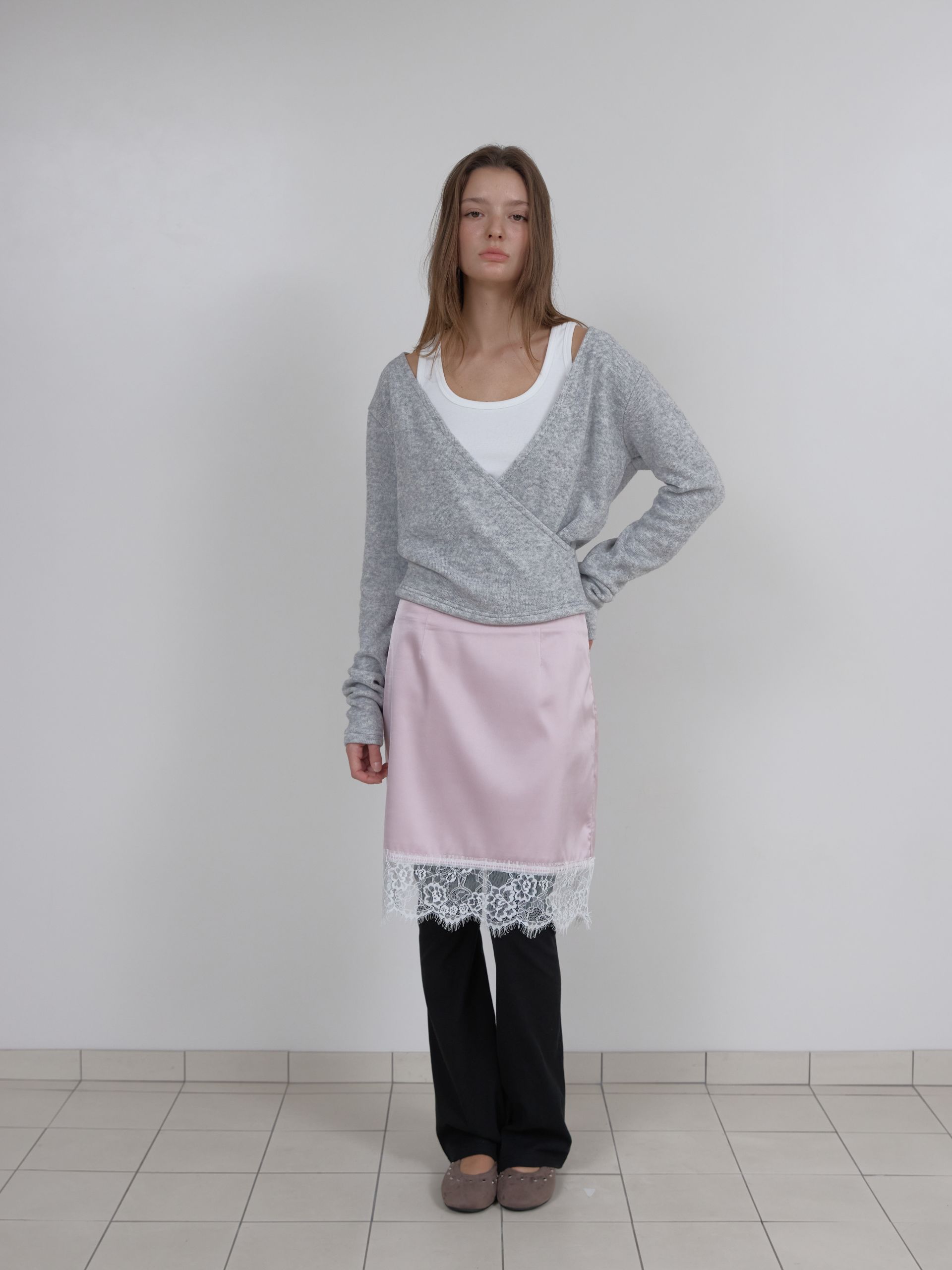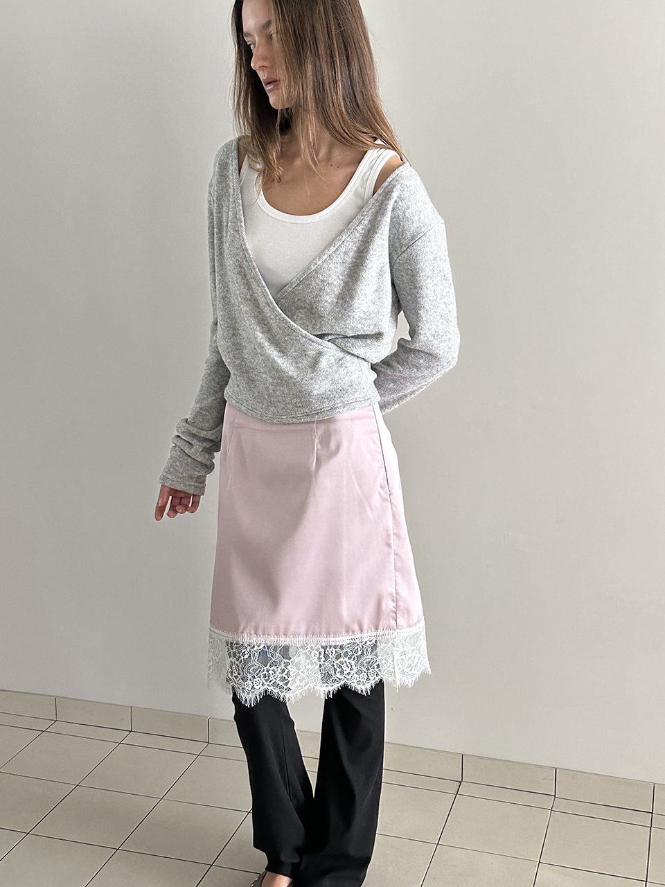 LACE SATIN SKIRT (PINK)