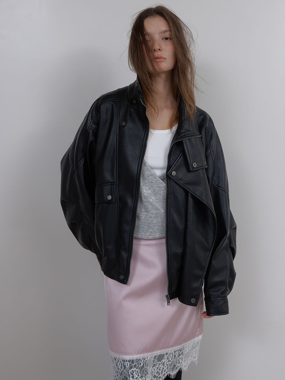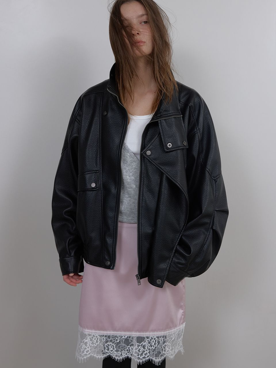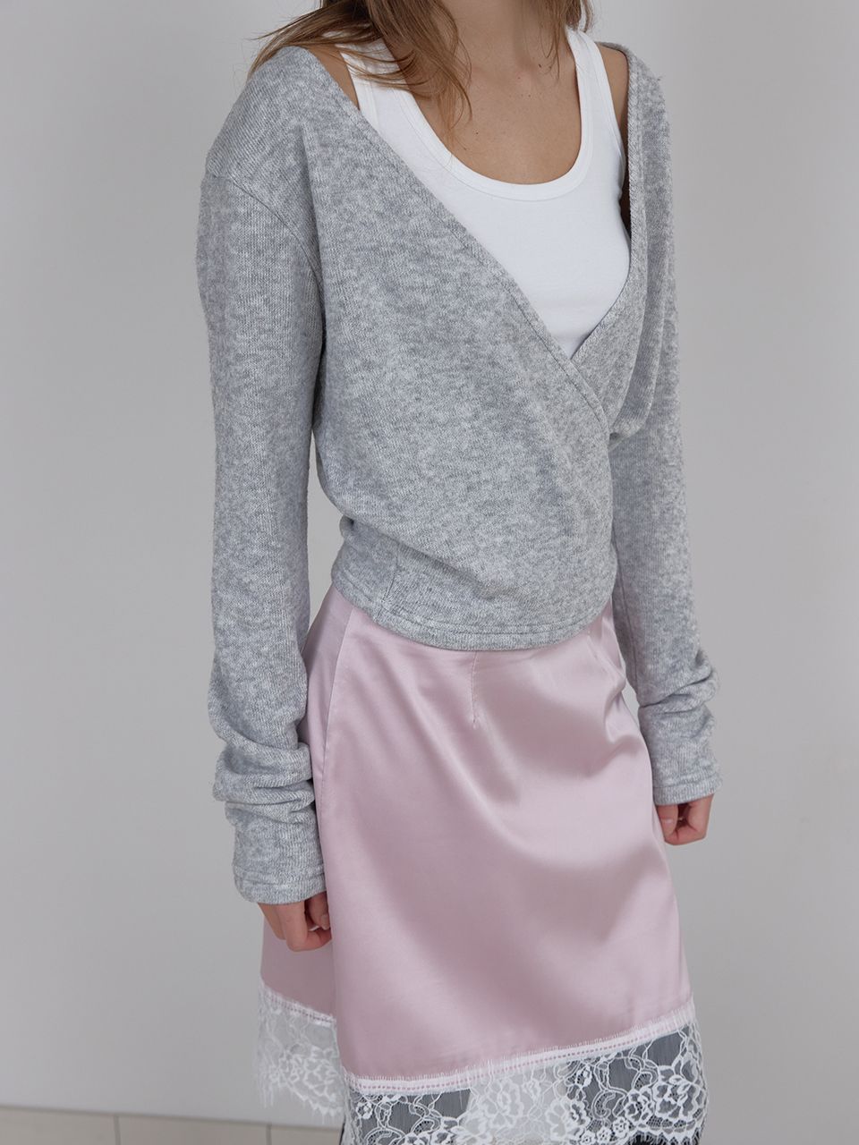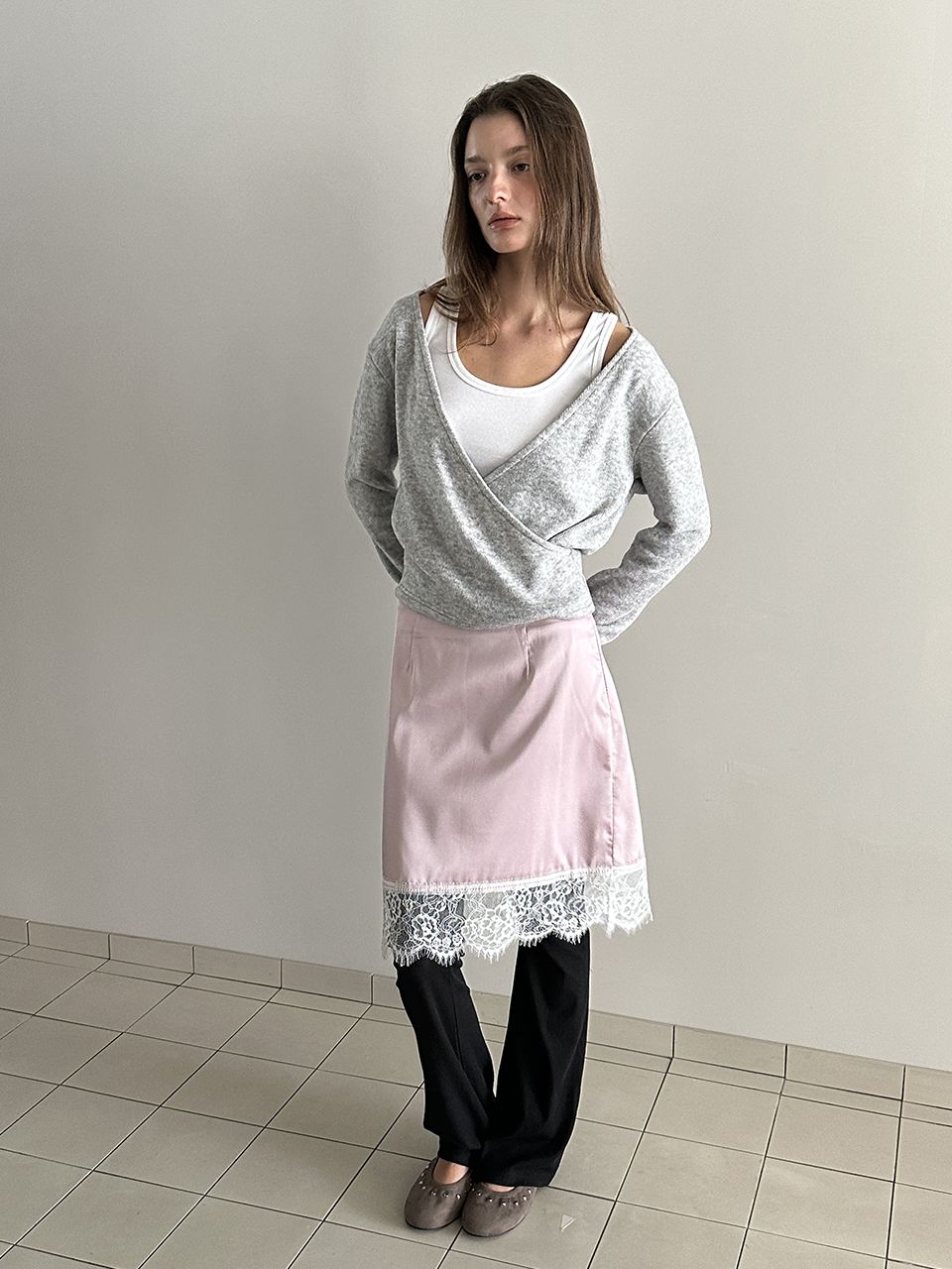 LACE SATIN SKIRT (PINK)