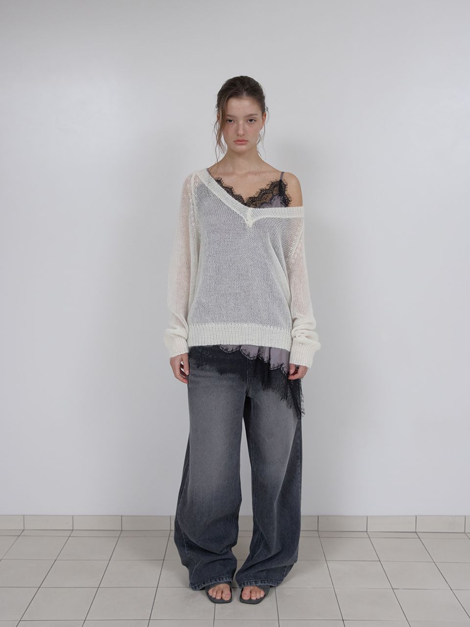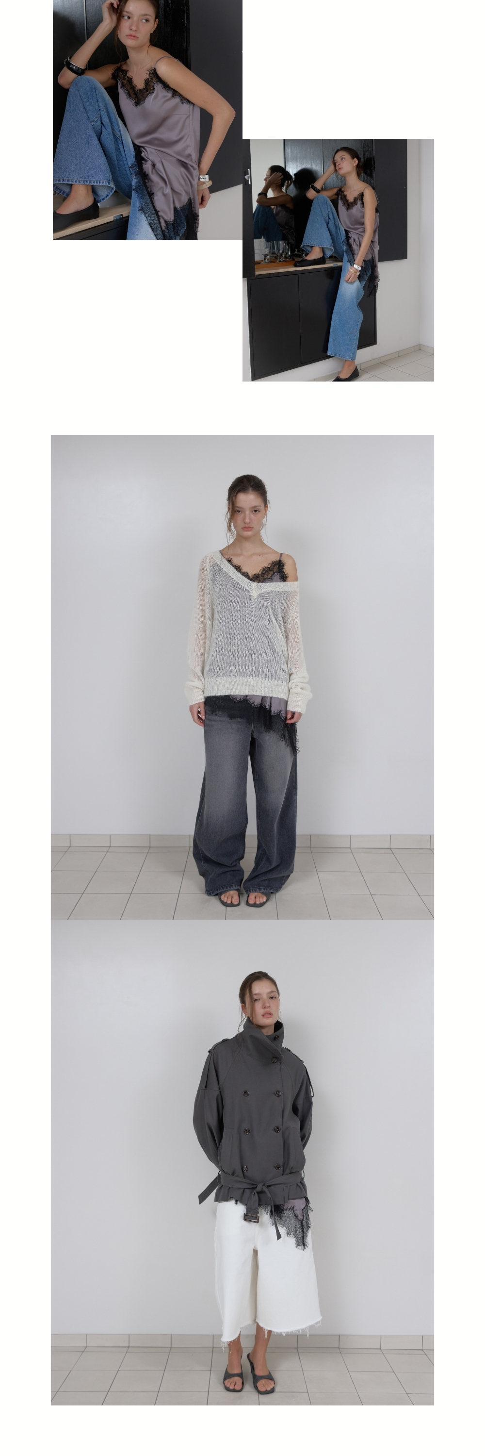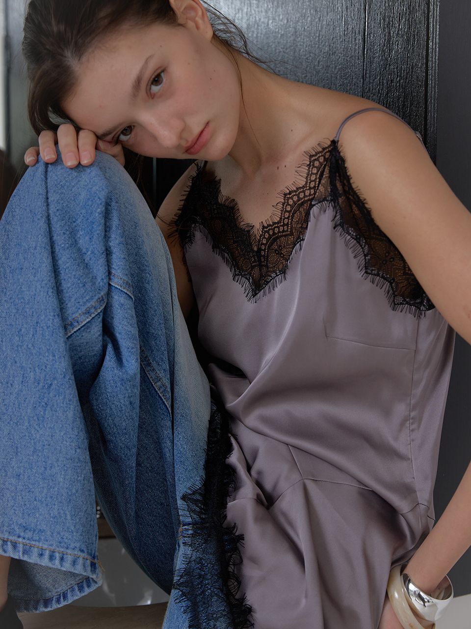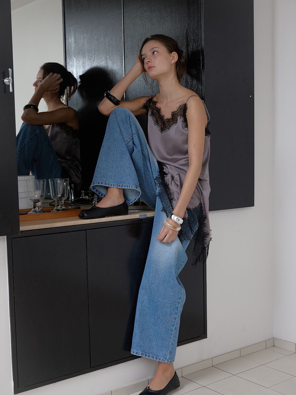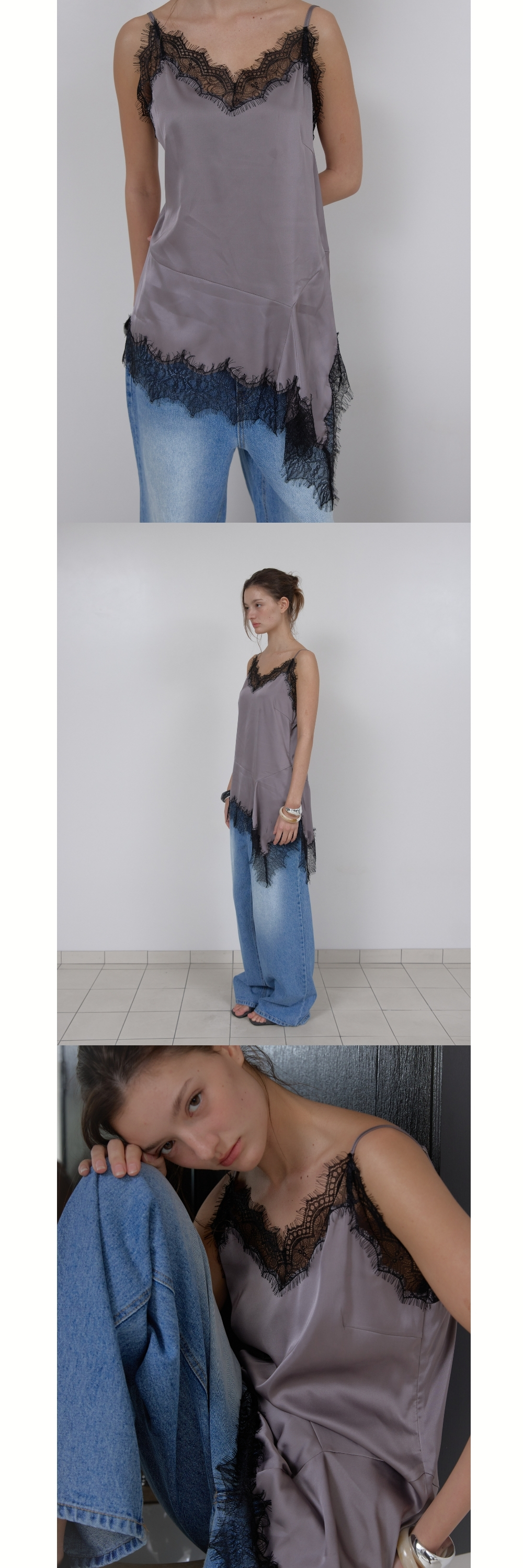 LAYERED SATIN TOP (GREY) (3월 13일 예약배송)