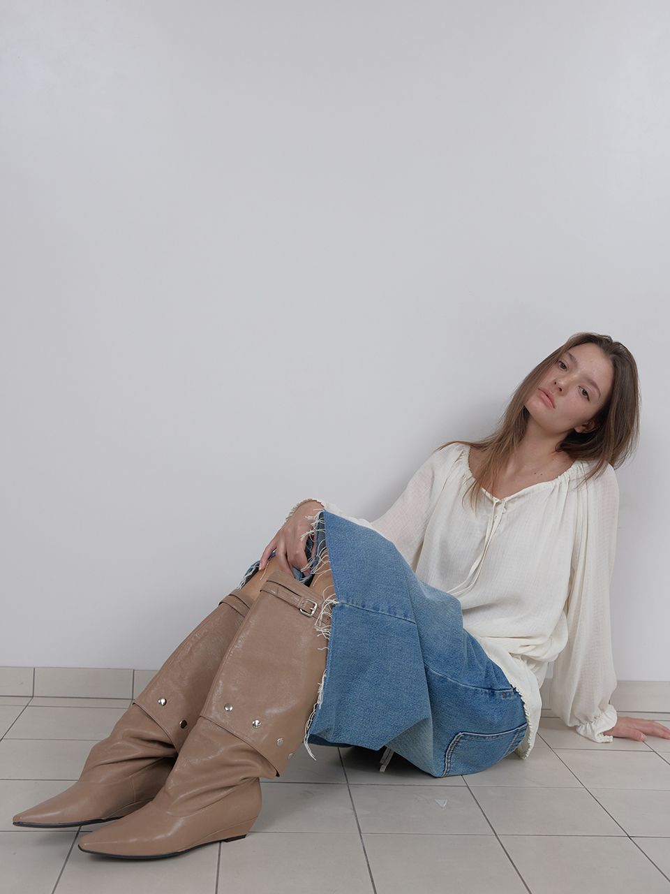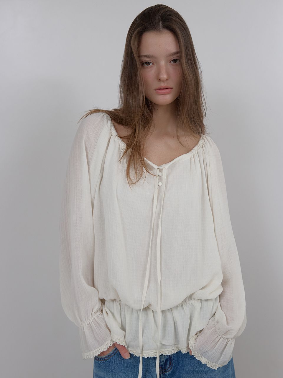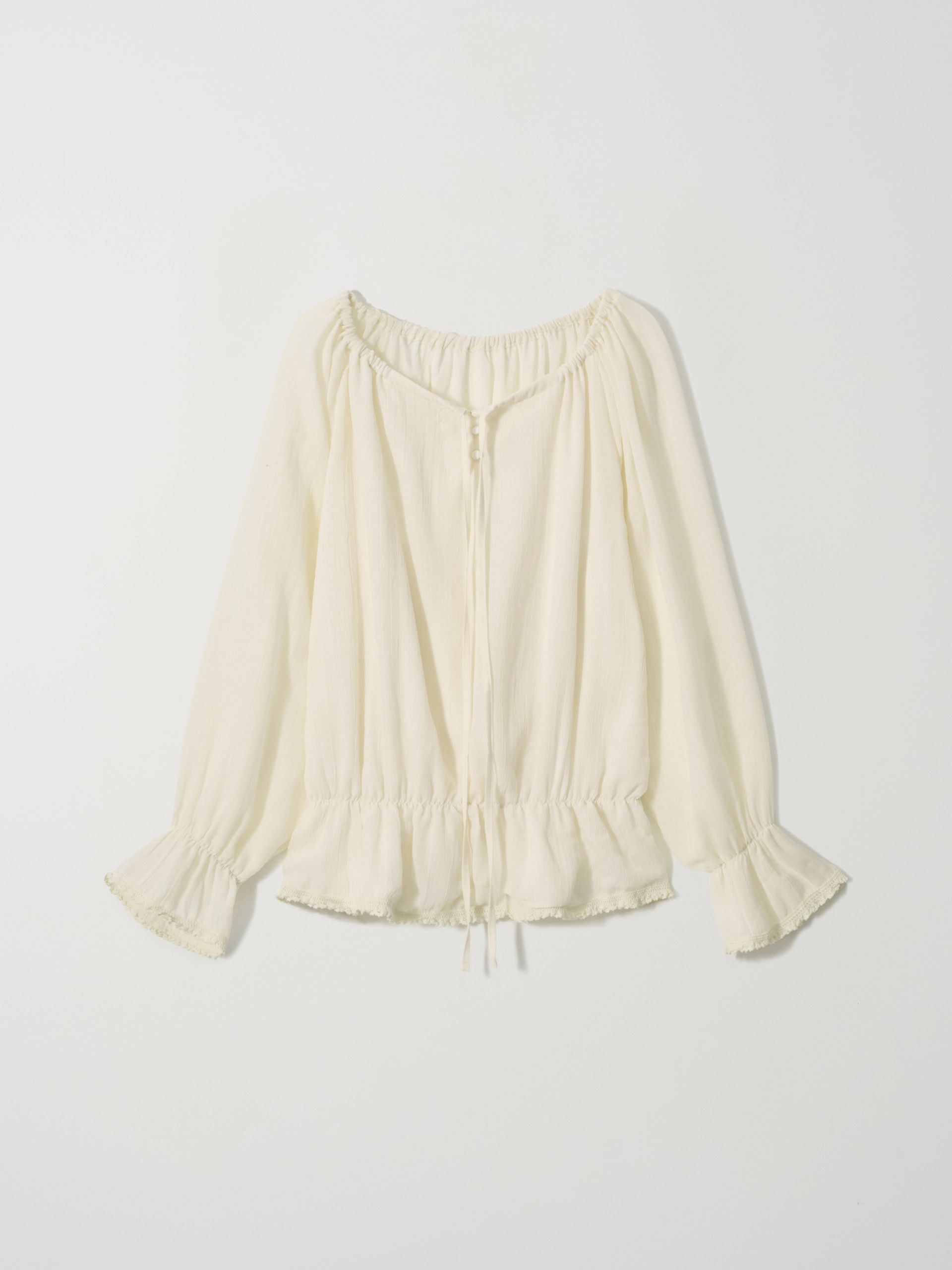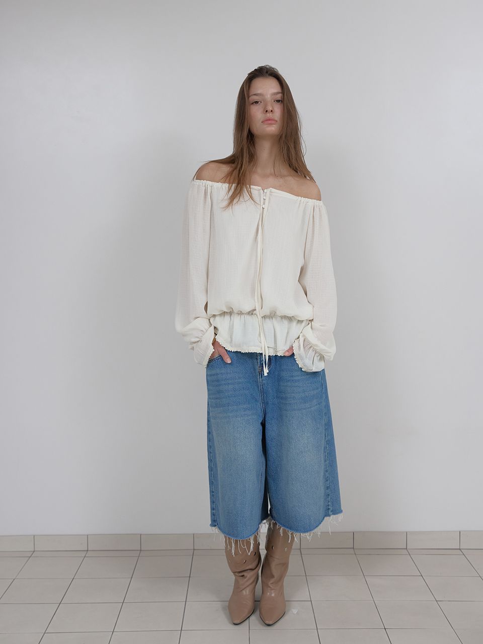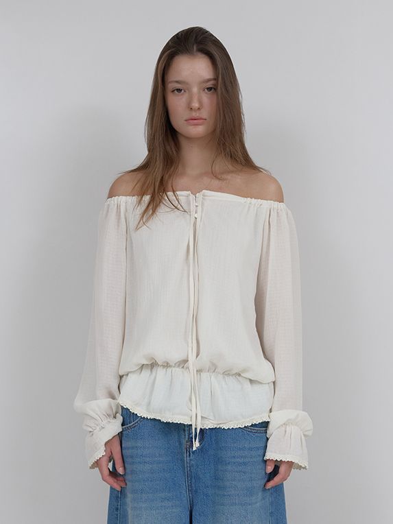 OFF-SHOULDER SHIRRING BLOUSE (IVORY)