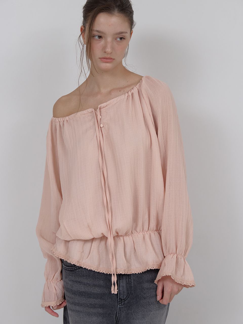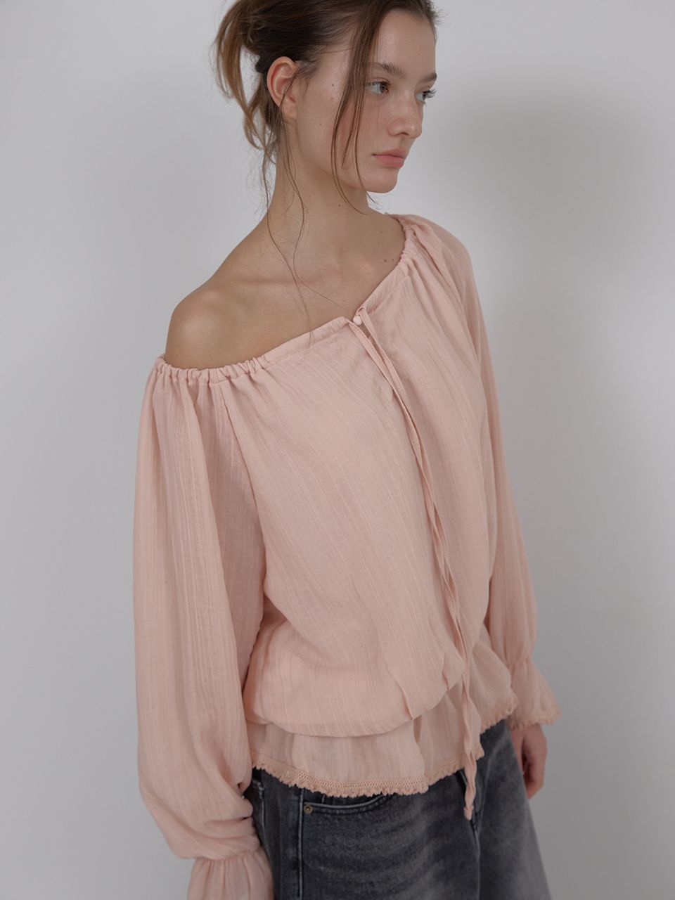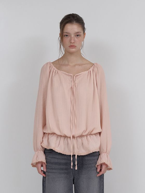 OFF-SHOULDER SHIRRING BLOUSE (PINK)