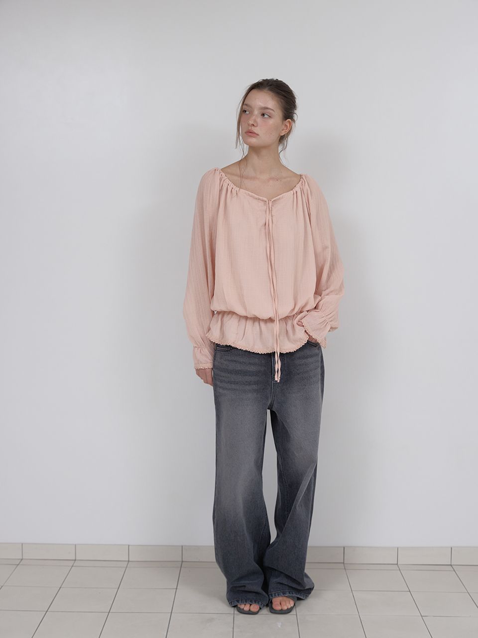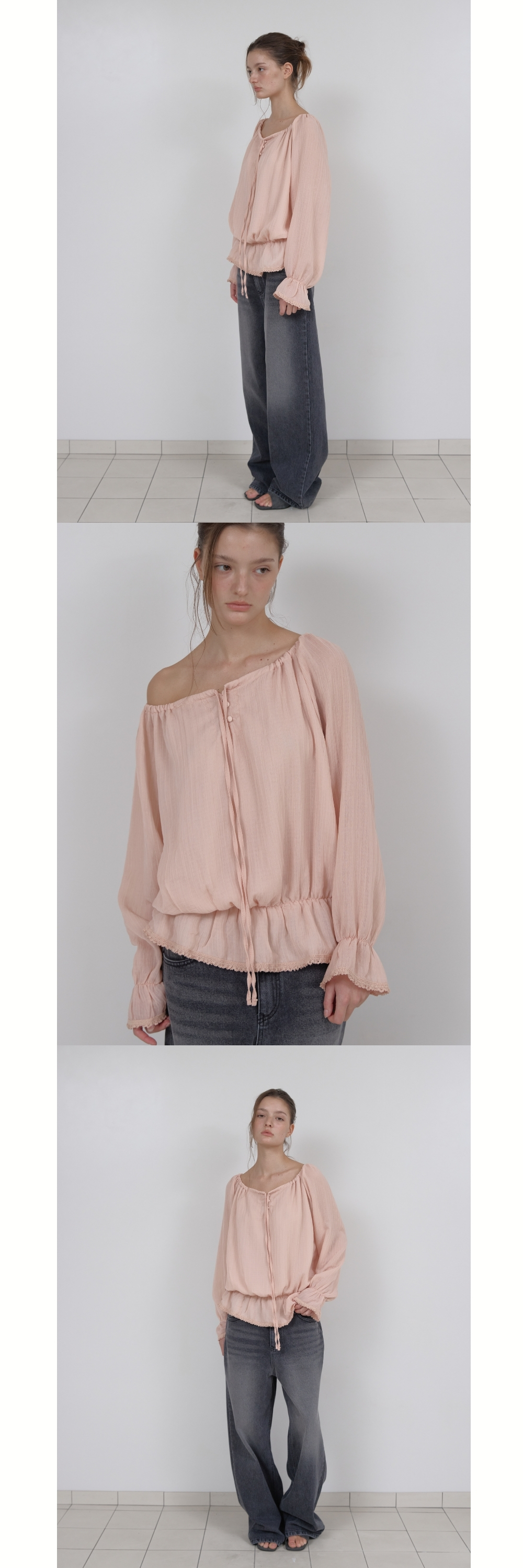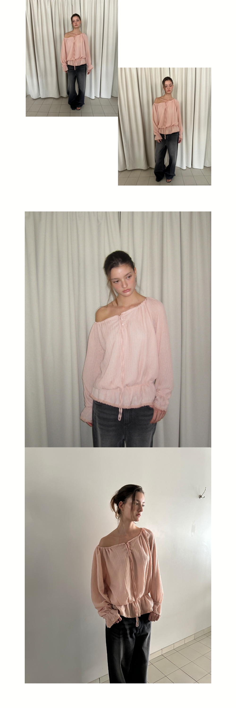 OFF-SHOULDER SHIRRING BLOUSE (PINK)