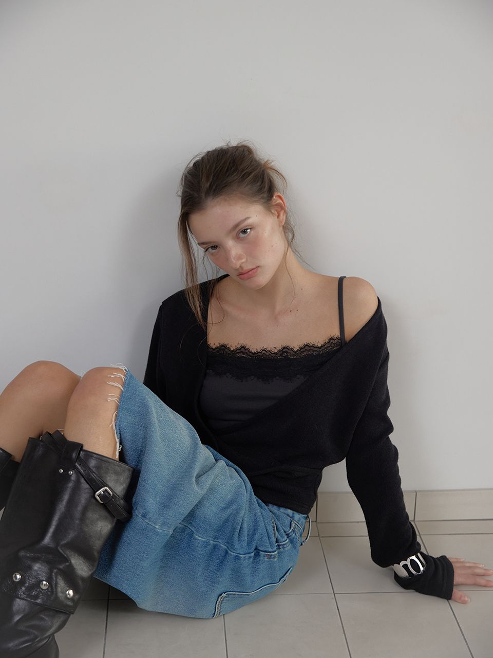 PALE LACE SLEEVELESS (CHARCOAL) (3월 13일 예약배송)