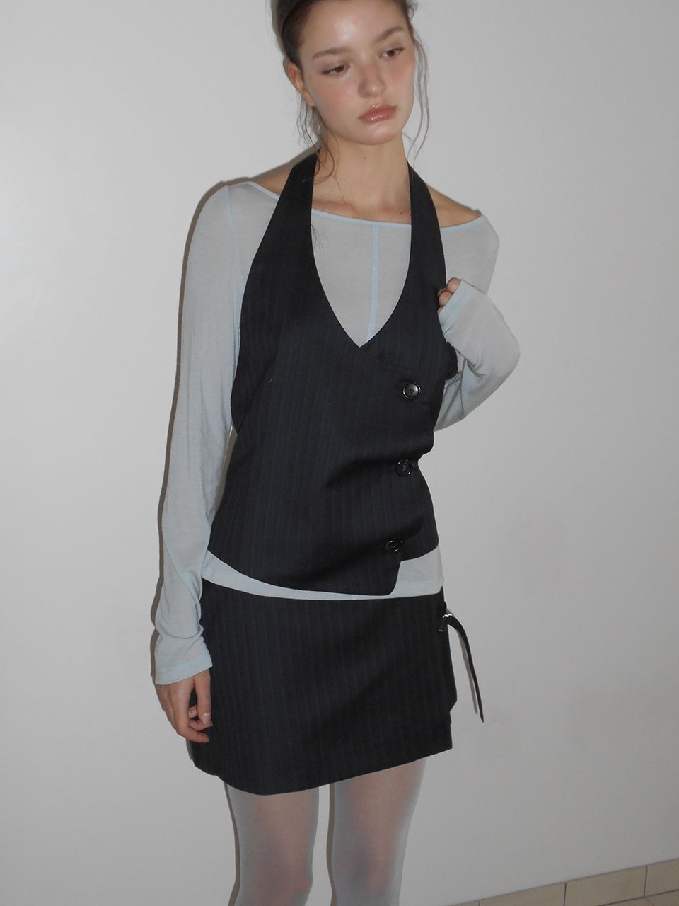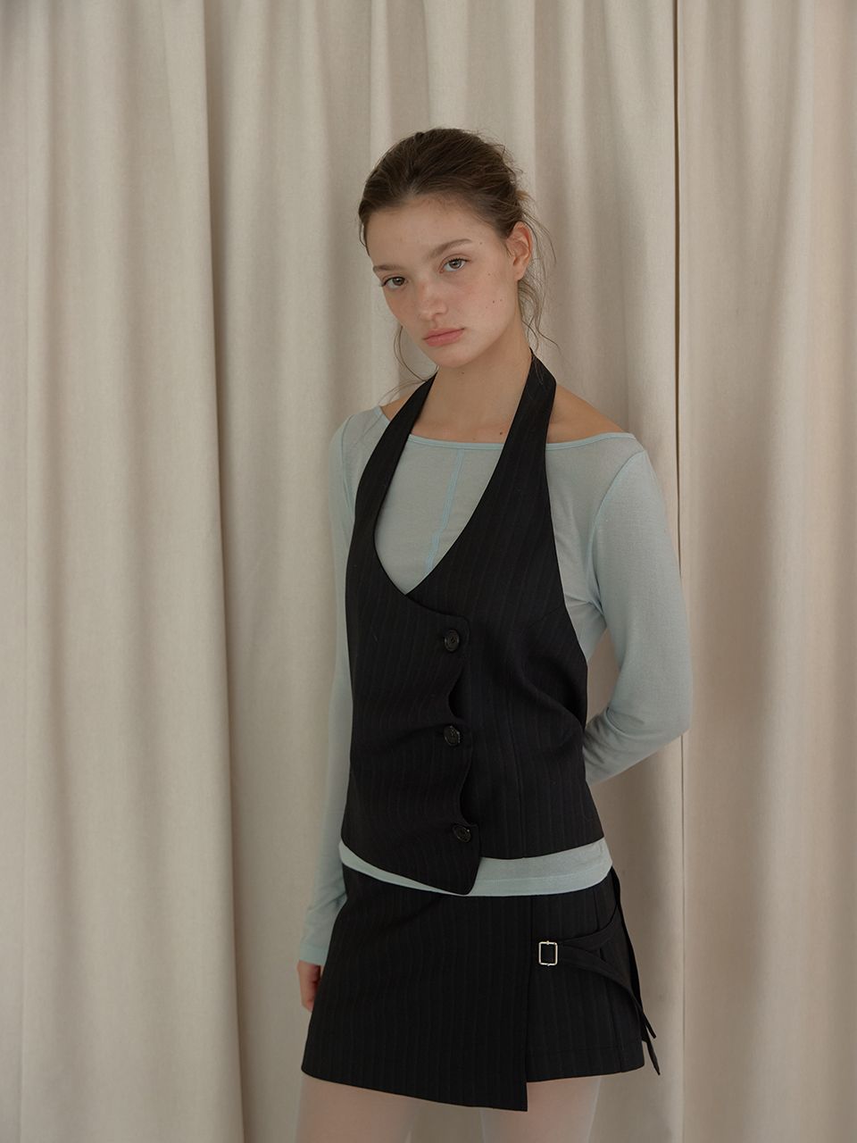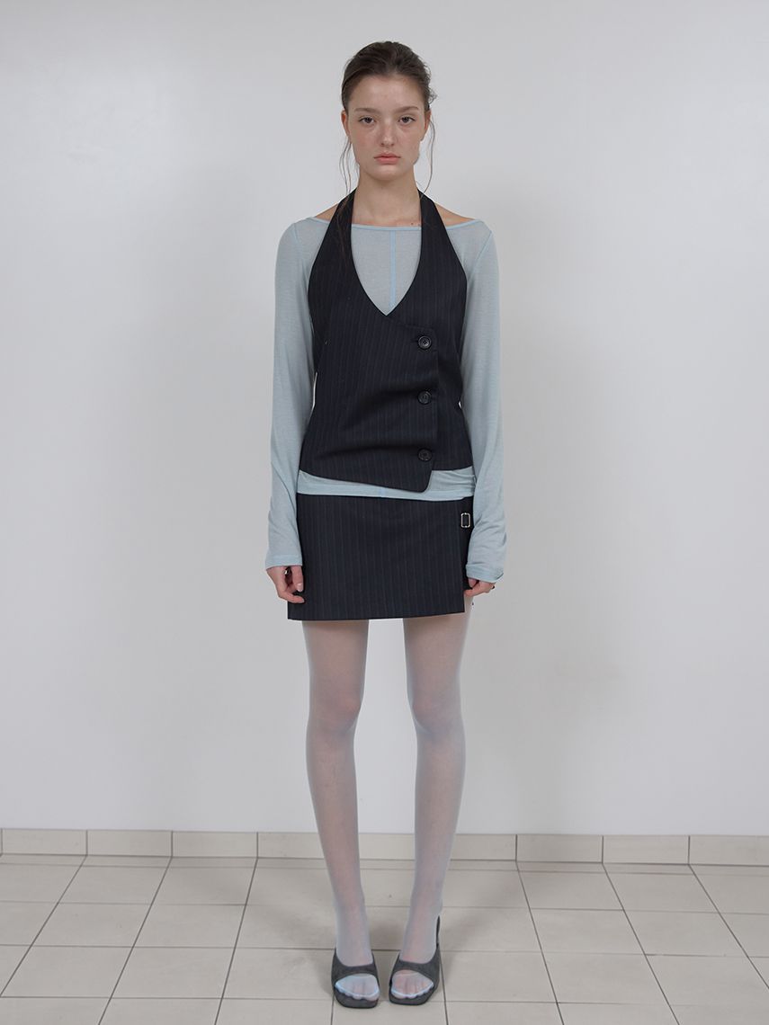 PIN STRIPE SKIRT PANTS (BLACK)