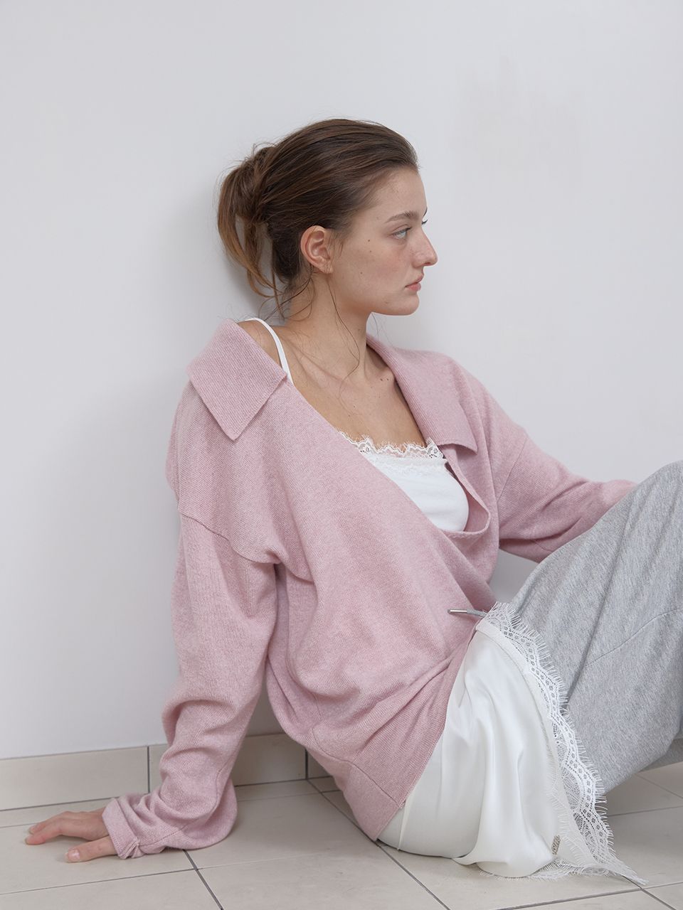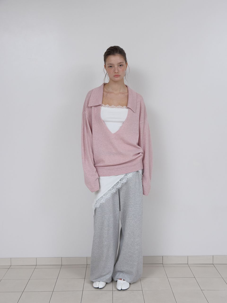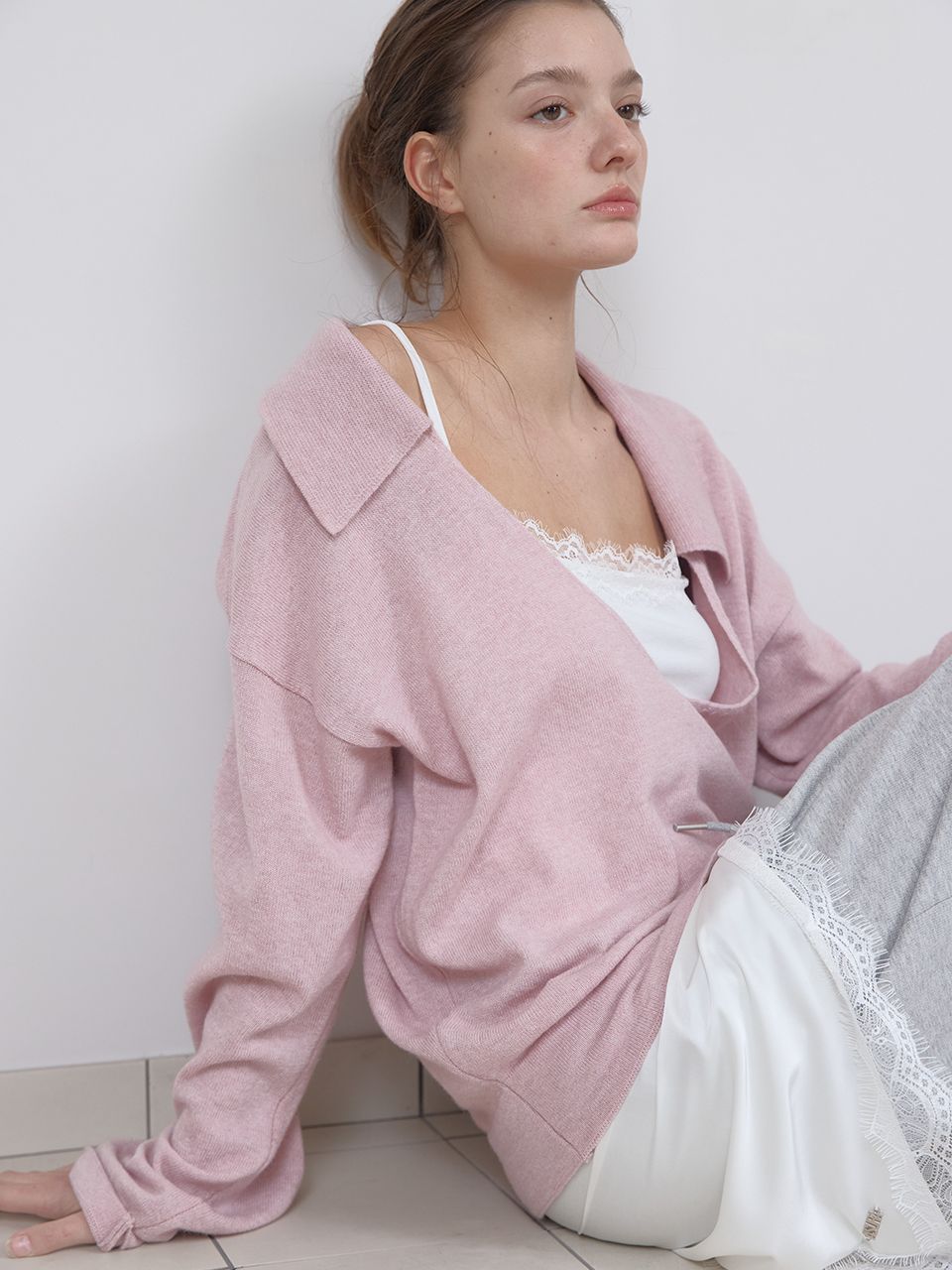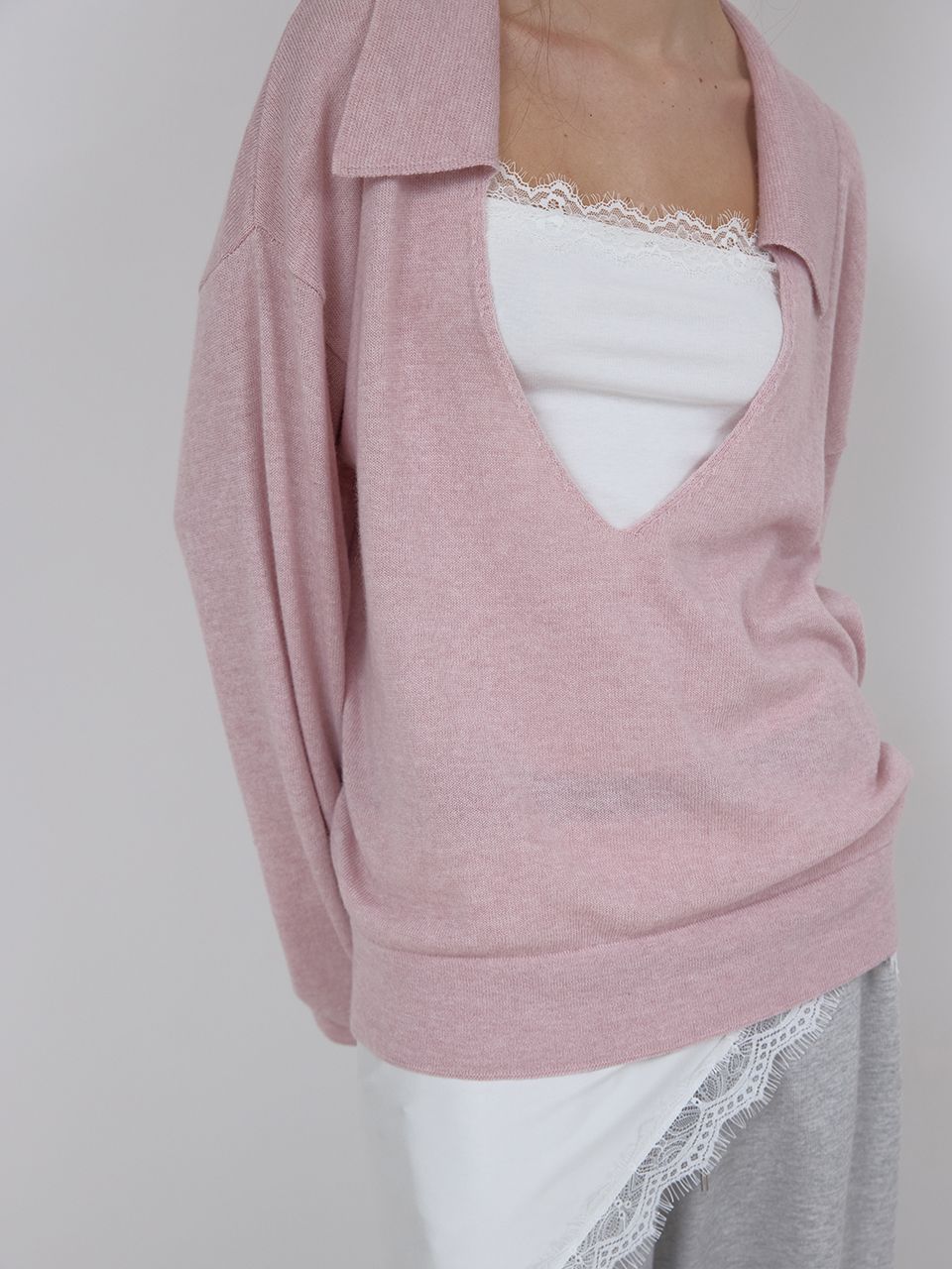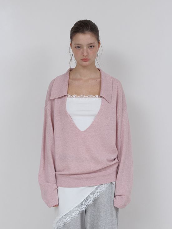 PURE WOOL COLLAR KNIT (LIGHT PINK)