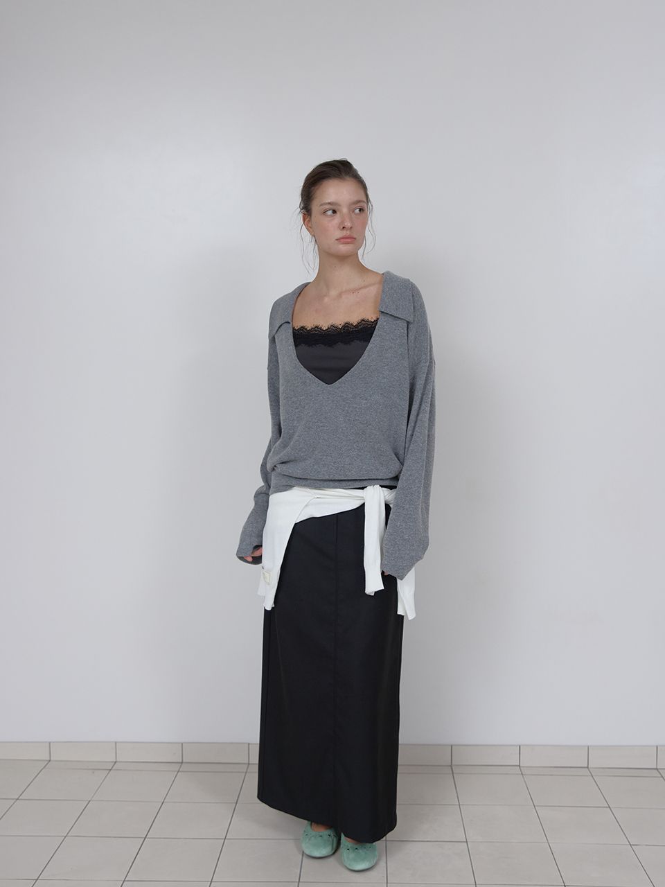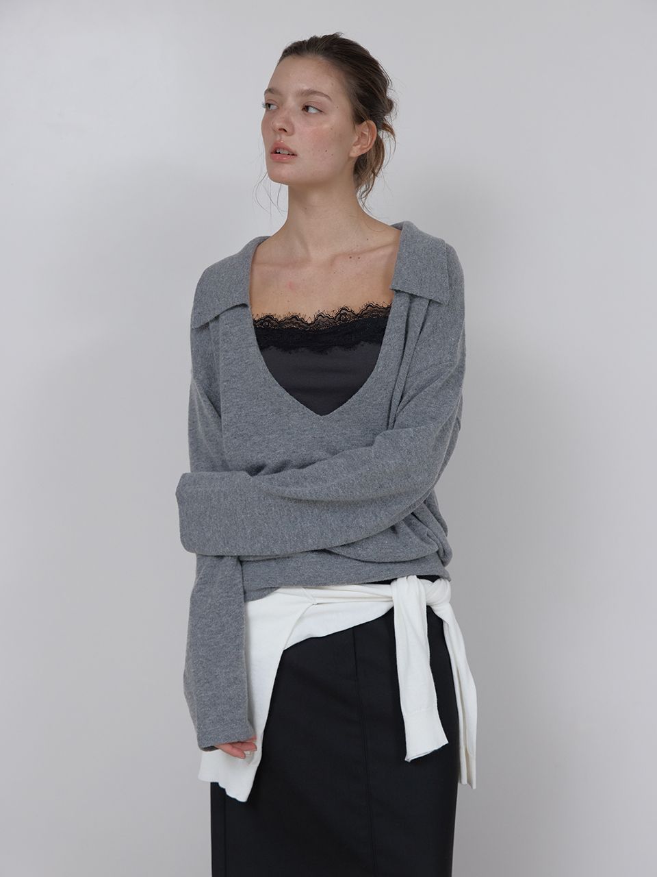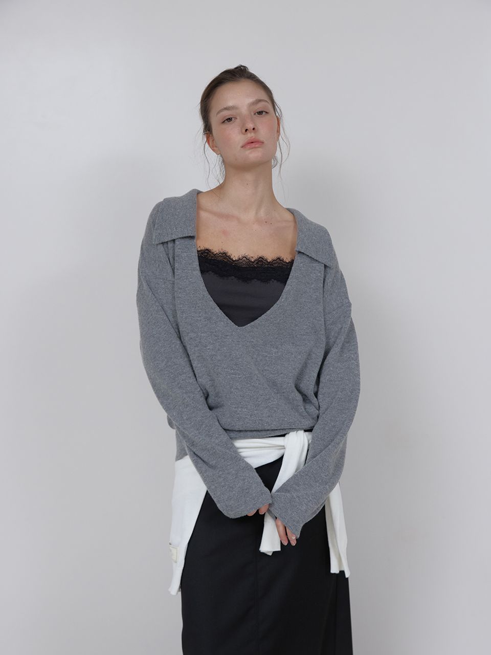 PURE WOOL COLLAR KNIT (MELANGE GREY)