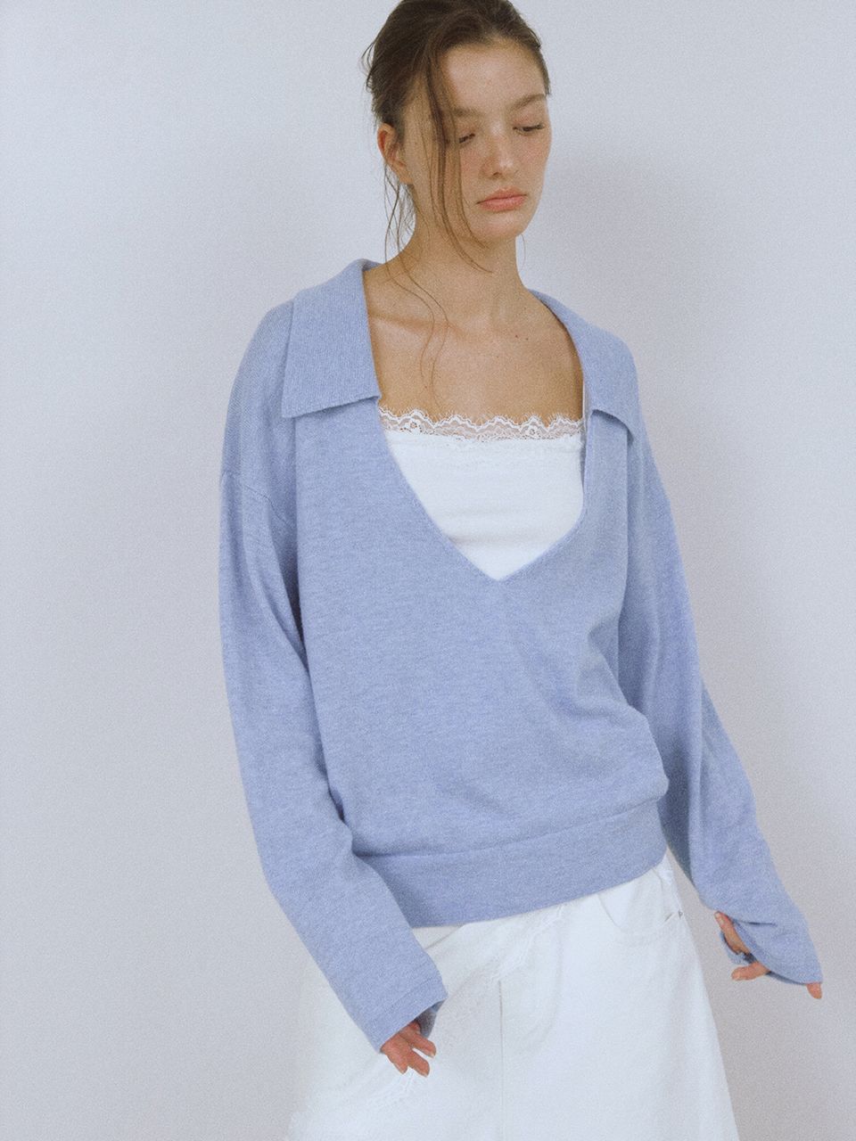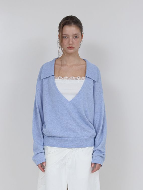 PURE WOOL COLLAR KNIT (SKY BLUE)