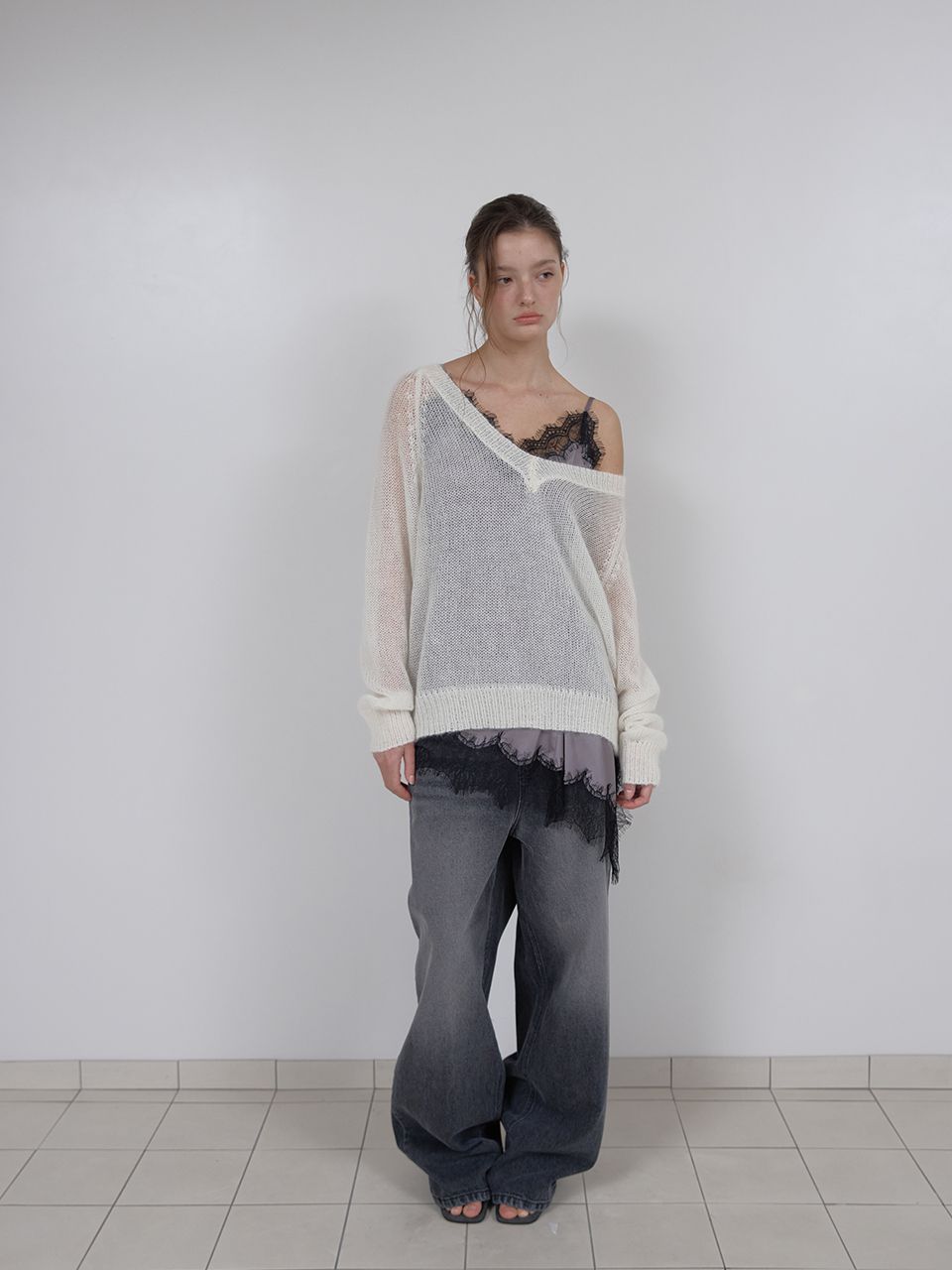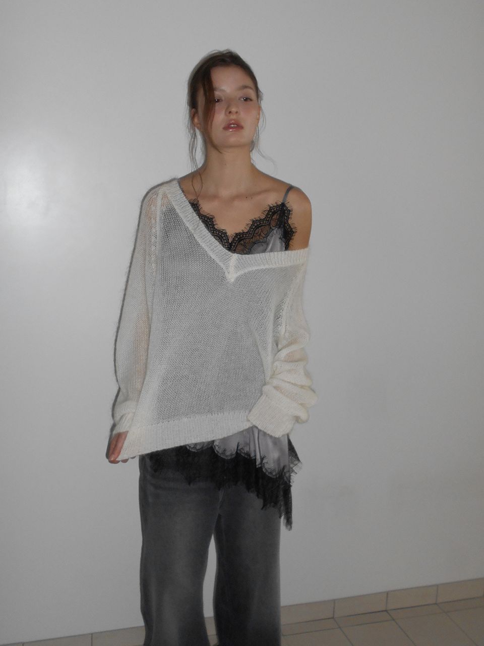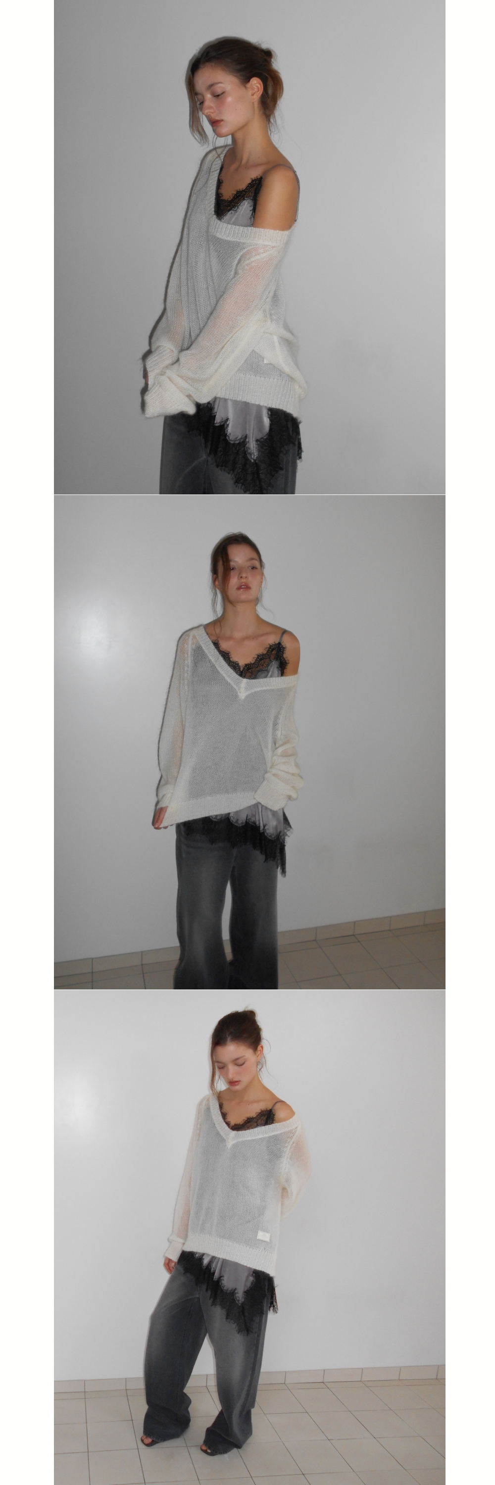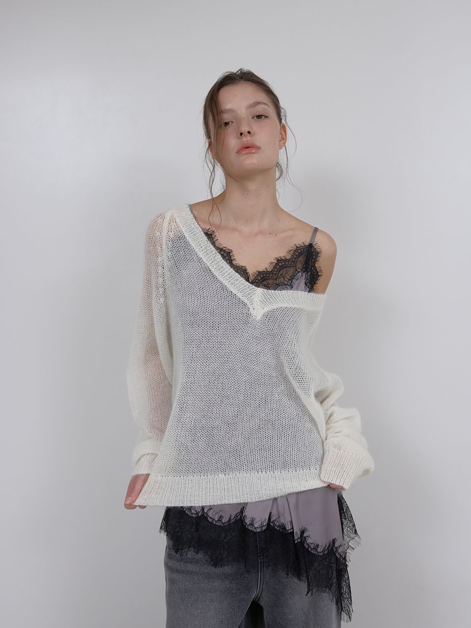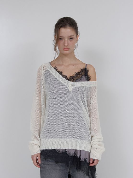 SHEER MOHAIR V-NECK KNIT (IVORY) (3월 13일 예약배송)