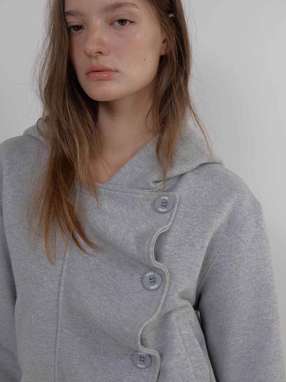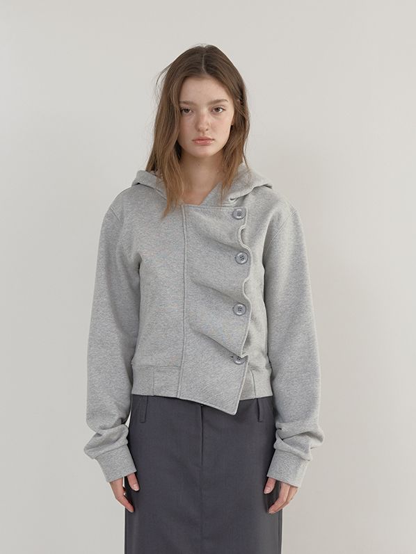 WAVE BUTTON HOOD ZIP UP (MELANGE GREY)