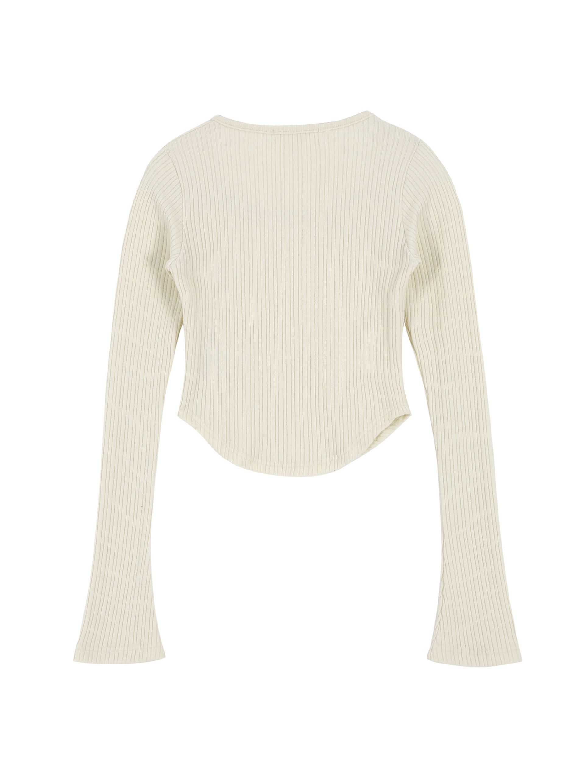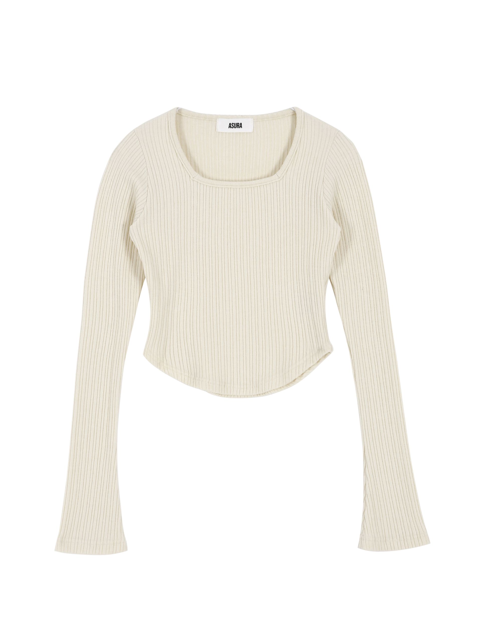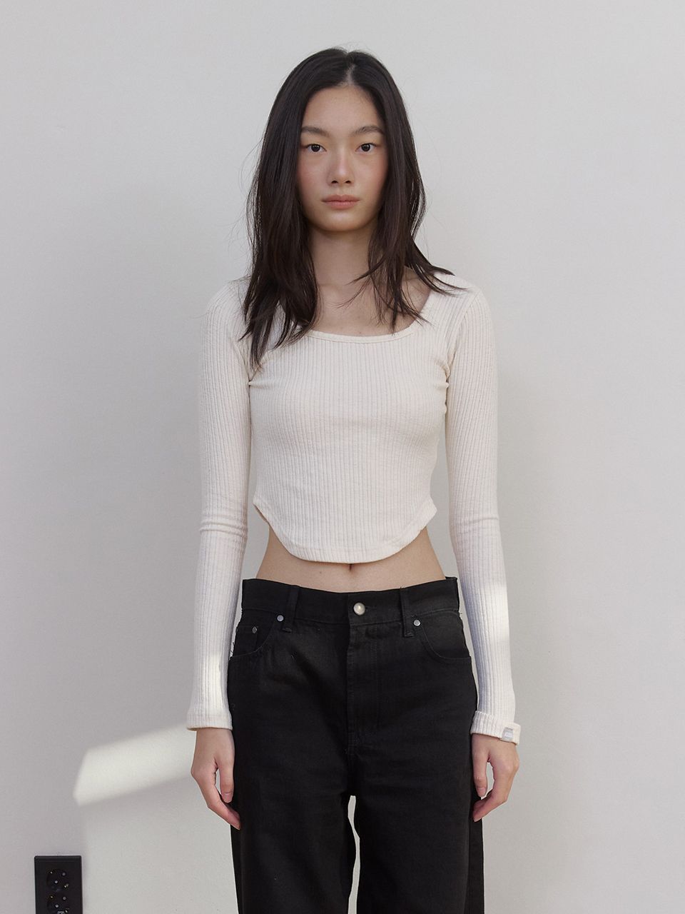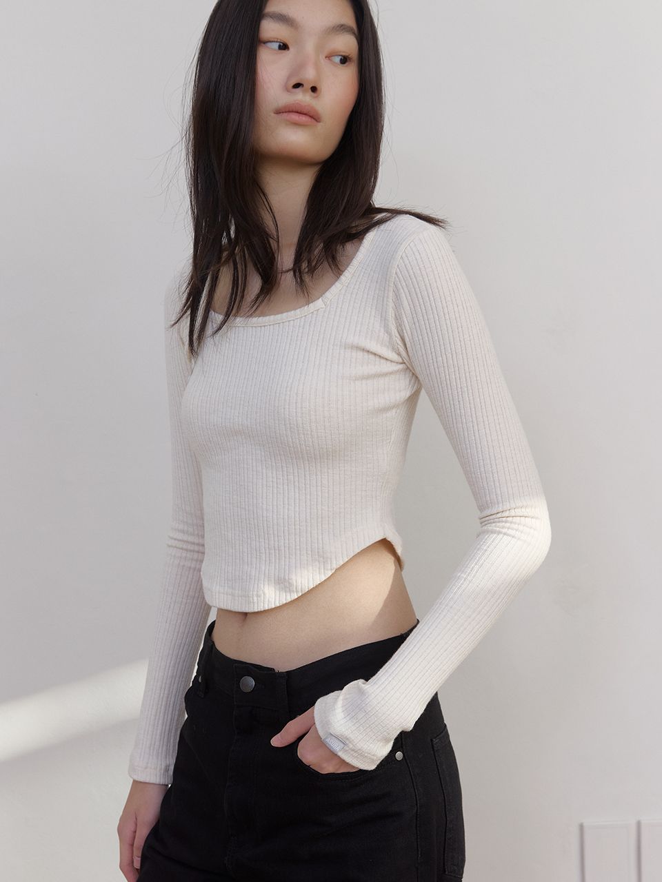 신축성이 좋은 립 조직으로 제작되어 슬림하고 편안하게 몸을 감싸주는 크롭 긴팔 탑입니다.