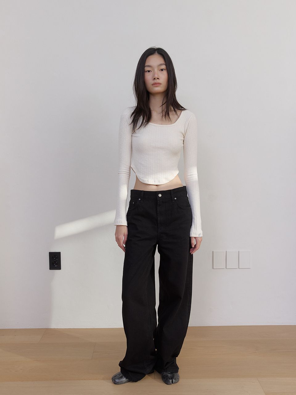 하이웨스트 하의와 매치하여 감각적인 캐주얼 룩을 연출하기 좋은 아이템입니다.