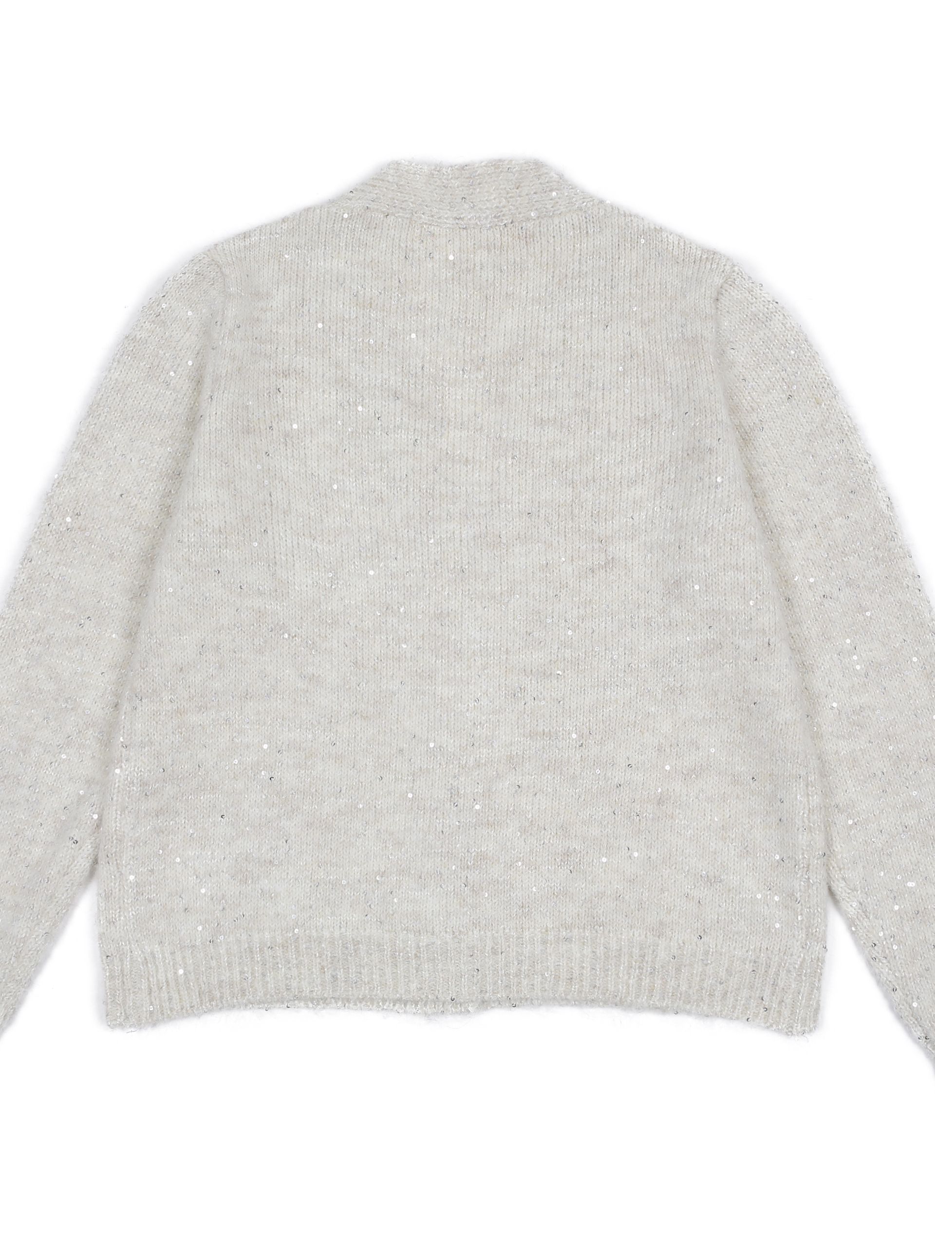 루즈하게 떨어지는 핏과 크롭 기장감이 트렌디하며, 니트 전체에 흩뿌려진 듯한 스팽글이 연말 룩 또는 포인트 아이템으로 활용하기에 완벽합니다.