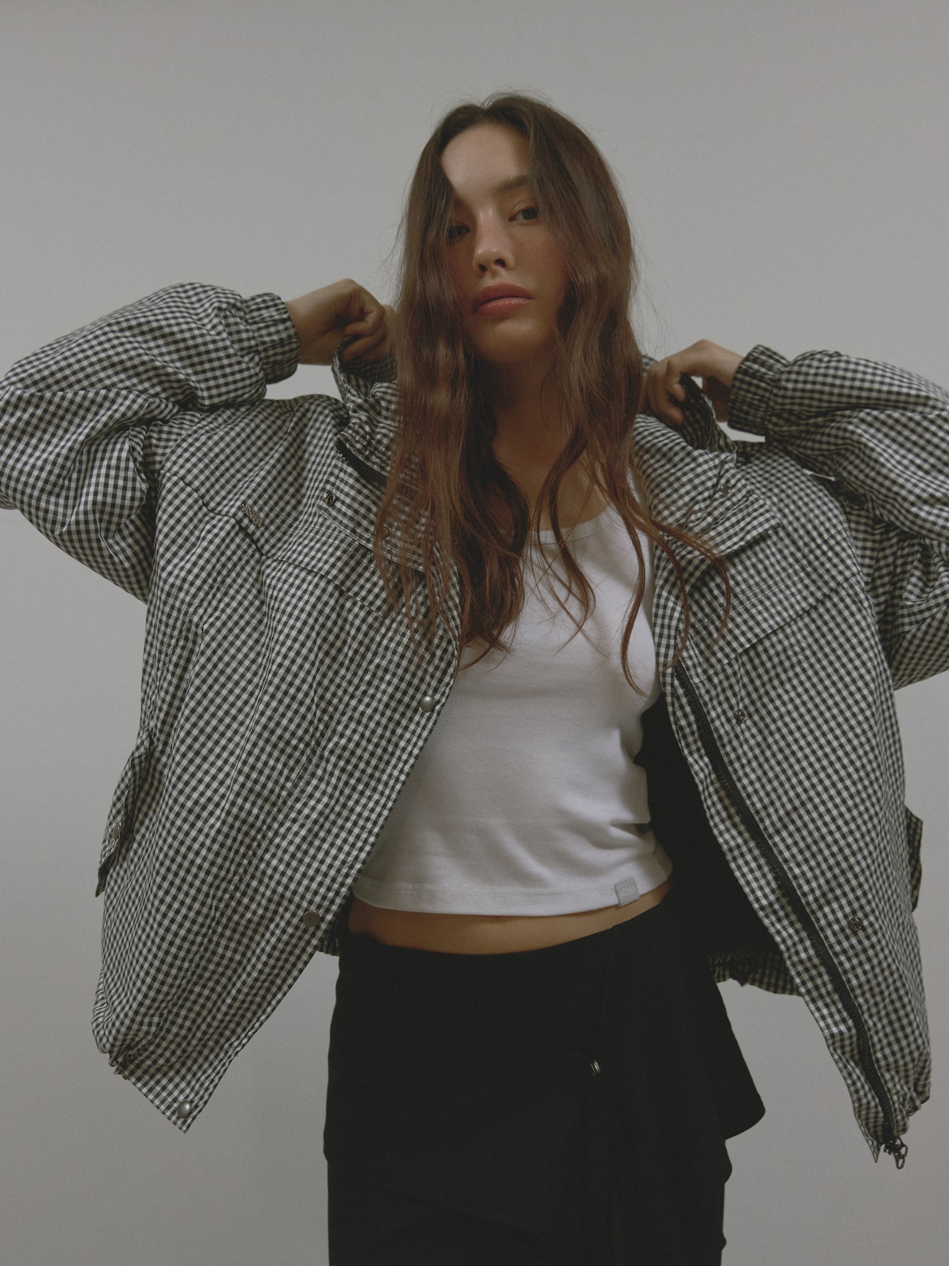 PATTERN DUO BOMBER JACKET (BLACK CHECK)