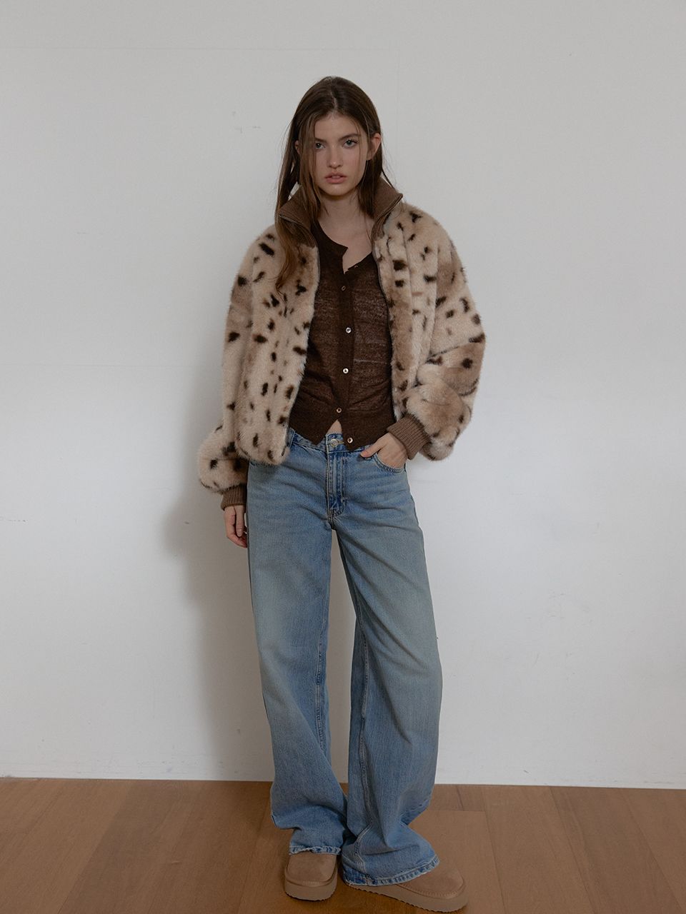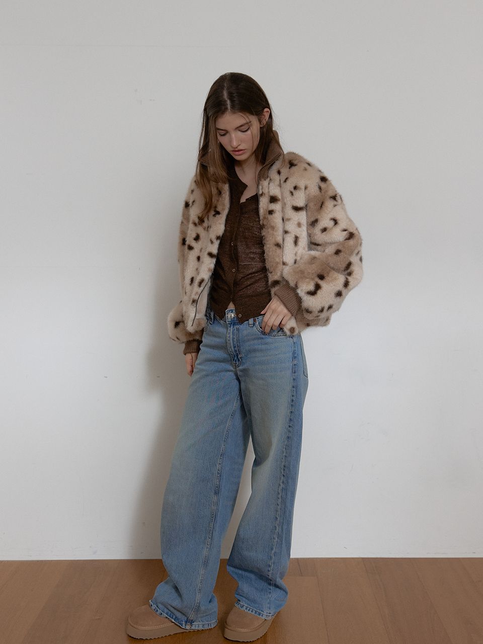 한 벌만으로도 포인트가 되는 퍼 아우터입니다.