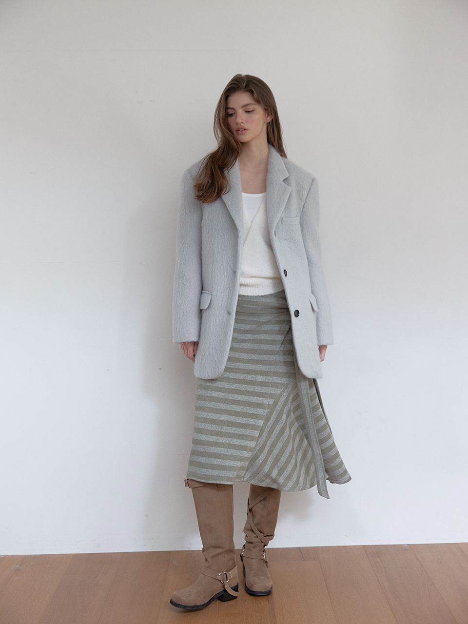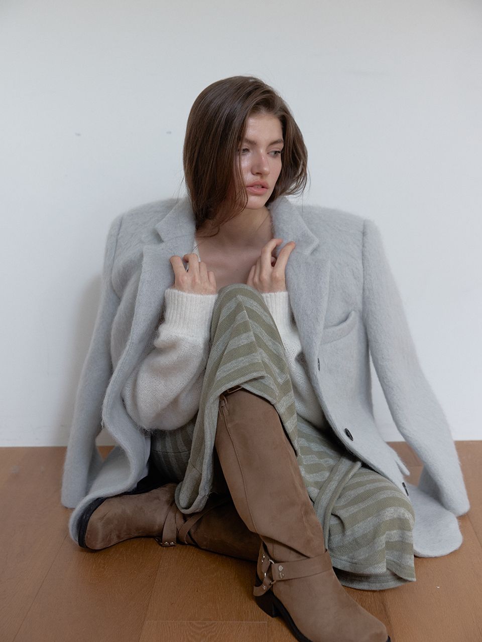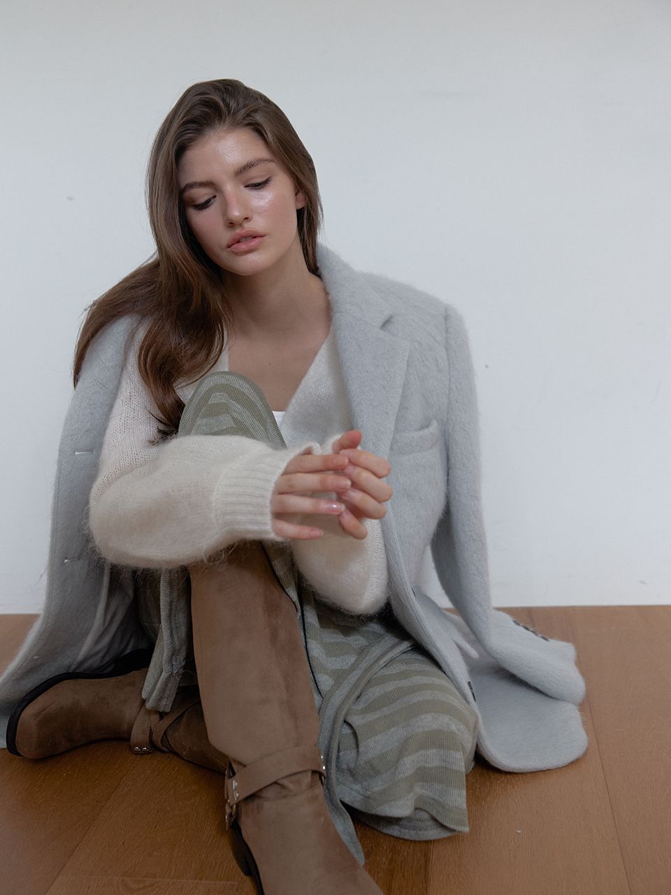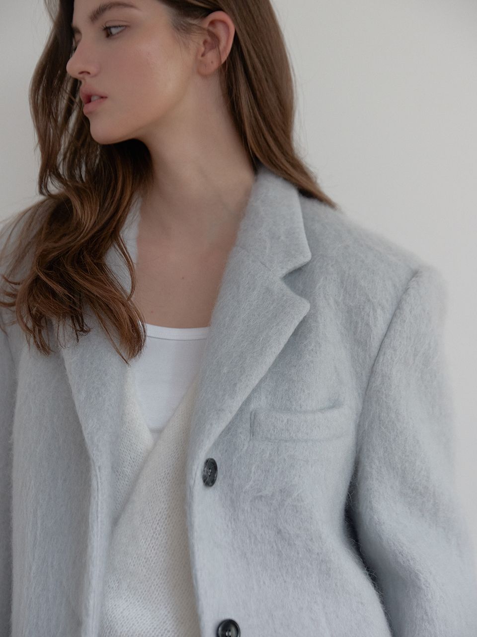 헤어리한 모헤어 소재가 포인트가 되고
